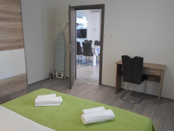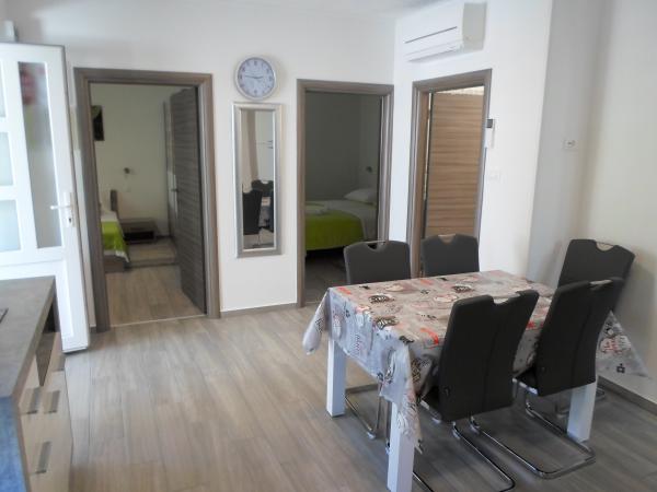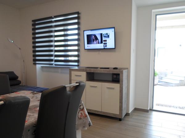 Najpiękniejszy jak dotąd apartament, nowocześnie urządzony, z dwiema sypialniami (duże, wygodne łóżka i duże szafy, wygodne joginy), łazienka ma pralkę, kuchnia ma również dużo sprzętu (prawie więcej niż w domu) i zmywarkę do naczyń. Wszystkie środki czyszczące obok naczyń, zmywarki i pralki. Właściciele super przyjaźni - kupili prezent dla syna, który miał w tych dniach urodziny. Mieszkanie znajduje się kilka kroków od pięknej plaży, ale tak daleko, że nie ma zgiełku. przyniesiony na taras. 5 minut od hotelu znajdują się restauracje, cukiernie z najlepszymi lodami, stragany, ale nie ma ... (Njivice) są prawem - zalecamy :)