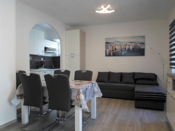 Bardzo mili i życzliwi właściciele. Zajęli się wszystkim, co było konieczne. Polecam dla rodzin z dziećmi. Mieszkanie jest nowe, urządzone na najwyższym poziomie w taki sposób, że praktycznie nie trzeba niczego nosić. Plaża z małymi kamykami, gdzie dzieci mogą bawić się przez cały dzień, jest oddalona o 50 metrów od apartamentu, sklep znajduje się 20 m od apartamentu, byliśmy zadowoleni i myślę, że wrócimy.