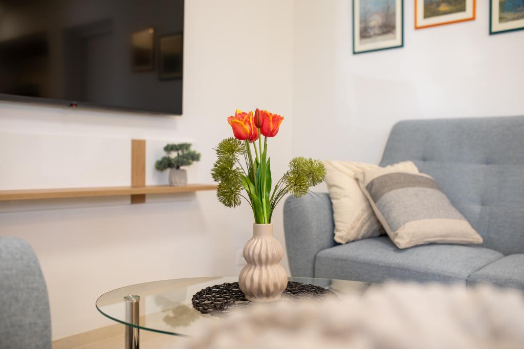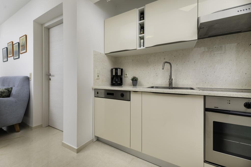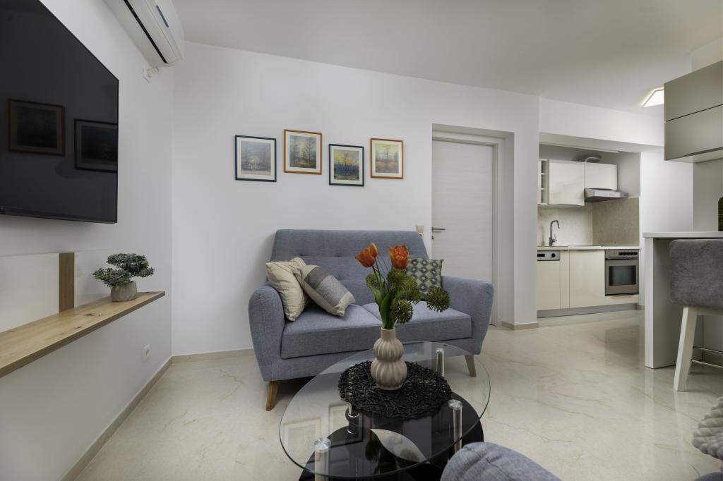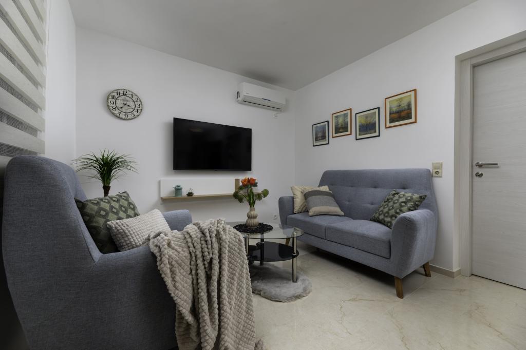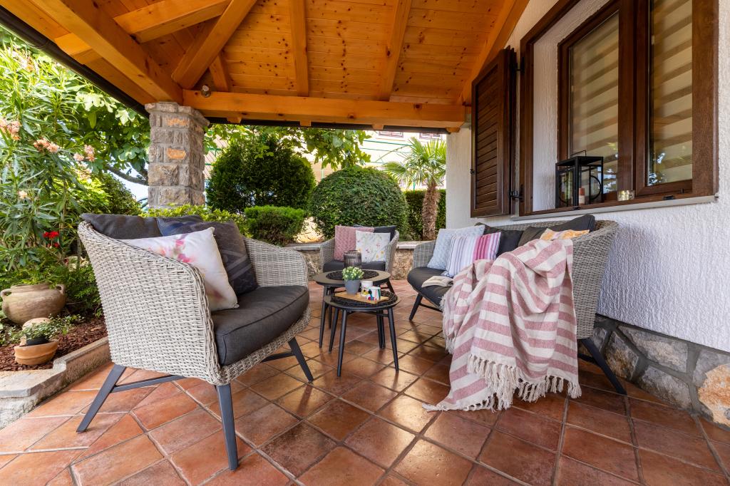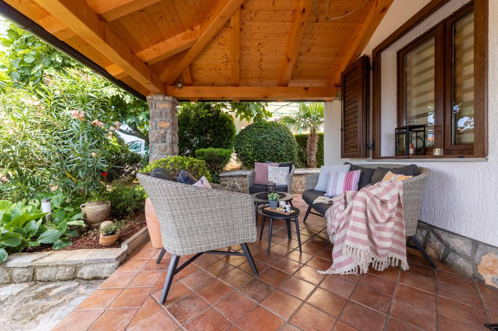Położony w spokojnej części miejscowości Njivice na wyspie Krk, ten nowo wyremontowany apartament na parterze oferuje idealne połączenie komfortu i relaksującej śródziemnomorskiej atmosfery. Jest idealny dla rodzin lub mniejszych grup, które chcą cieszyć się wakacjami blisko morza, w ciszy i spokoju. Apartament posiada dwie przestronne sypialnie, nowoczesną łazienkę i dodatkową, oddzielną toaletę. W jednej z sypialni znajduje się niewielki pokój z dodatkowym łóżkiem. W pełni wyposażona kuchnia i przytulny salon zapewniają wszystko, czego potrzeba do relaksującego pobytu. Szczególnym atutem jest zadaszony taras otoczony zielenią, idealny na poranną kawę, rodzinny posiłek lub wieczorny relaks. Goście mają do dyspozycji klimatyzację, Wi-Fi, prywatny parking, prysznic na świeżym powietrzu i grill. Plaża znajduje się zaledwie 600 metrów od apartamentu, a w pobliżu znajdują się restauracje, sklepy i wszelkie niezbędne udogodnienia, gwarantujące beztroski wypoczynek. Ciesz się krystalicznie czystym morzem, spacerami wzdłuż wybrzeża i autentyczną wyspiarską atmosferą, która zapewnia idealną równowagę między odpoczynkiem a aktywnością.