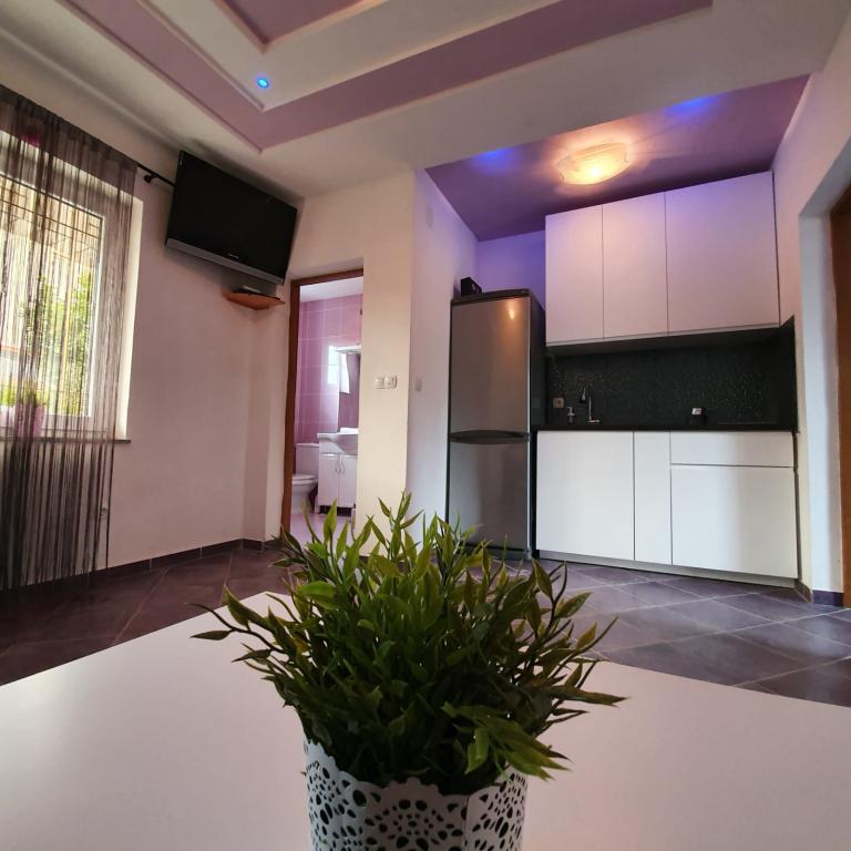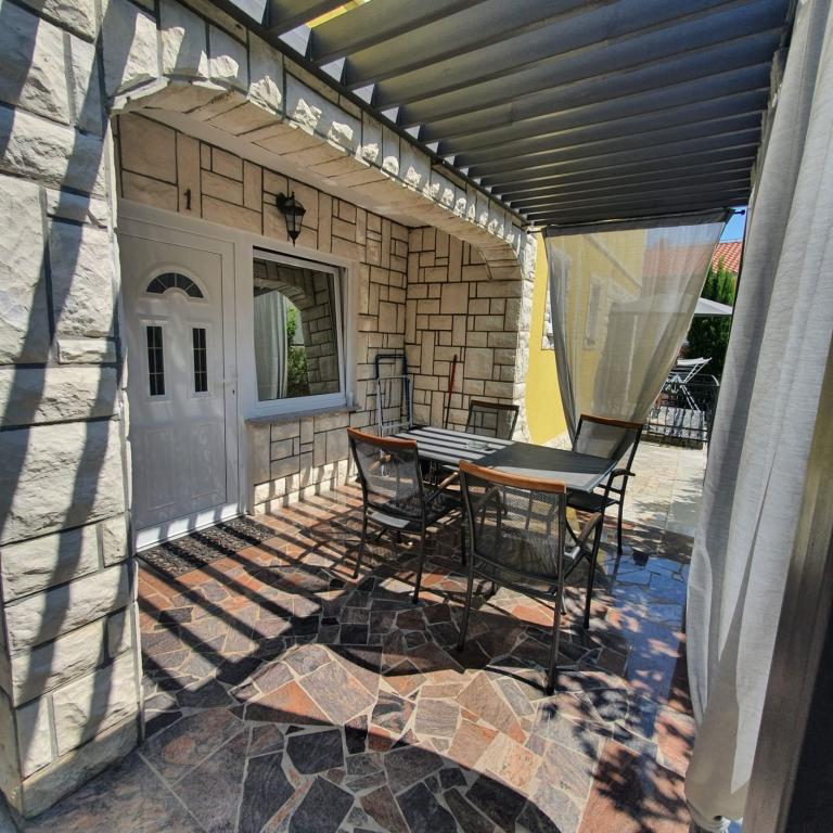Dom położony jest w spokojnej części Njivicy na wyspie Krk, 500 m od morza i jest bardzo odpowiedni na rodzinne wakacje. Jest szczególnie odpowiedni dla dzieci, ponieważ jest ogrodzony dziedziniec i huśtawki. Przed domem znajduje się duży parking ogrodzony, dzięki czemu Twoje auto będzie bezpieczne. Do dyspozycji Gości jest również duży ogród i odkryty taras, na którym można urządzić grilla i cieszyć się cieniem przez cały dzień. Zawartość mieszkania: sypialnia z łóżkiem małżeńskim kuchnia (płyta indukcyjna, zlewozmywak, kuchenka mikrofalowa, lodówka z zamrażarką, czajnik, ekspres do kawy) klimatyzacja salon z rozkładaną sofą dla 2 osób łazienka (z pralką) balkon lub taras ze stołem i krzesłami dla relaksu i przyjemności