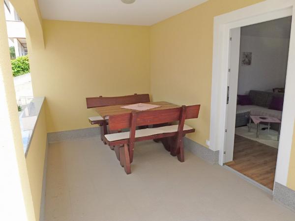 Nowo wybudowany dom rodzinny, położony powyżej centrum w spokojnej części miasta przy bocznej uliczce. Jest to około 10 minut spacerem od centrum i plaży. Dom jest dobrze ocieplony, o czym świadczy certyfikat energetyczny oznaczony B. Apartamenty są dobrze wyposażone, aby zapewnić przyjemny pobyt i mają zadaszone tarasy z pięknym widokiem na morze, las i góry. Zwierzęta na życzenie.