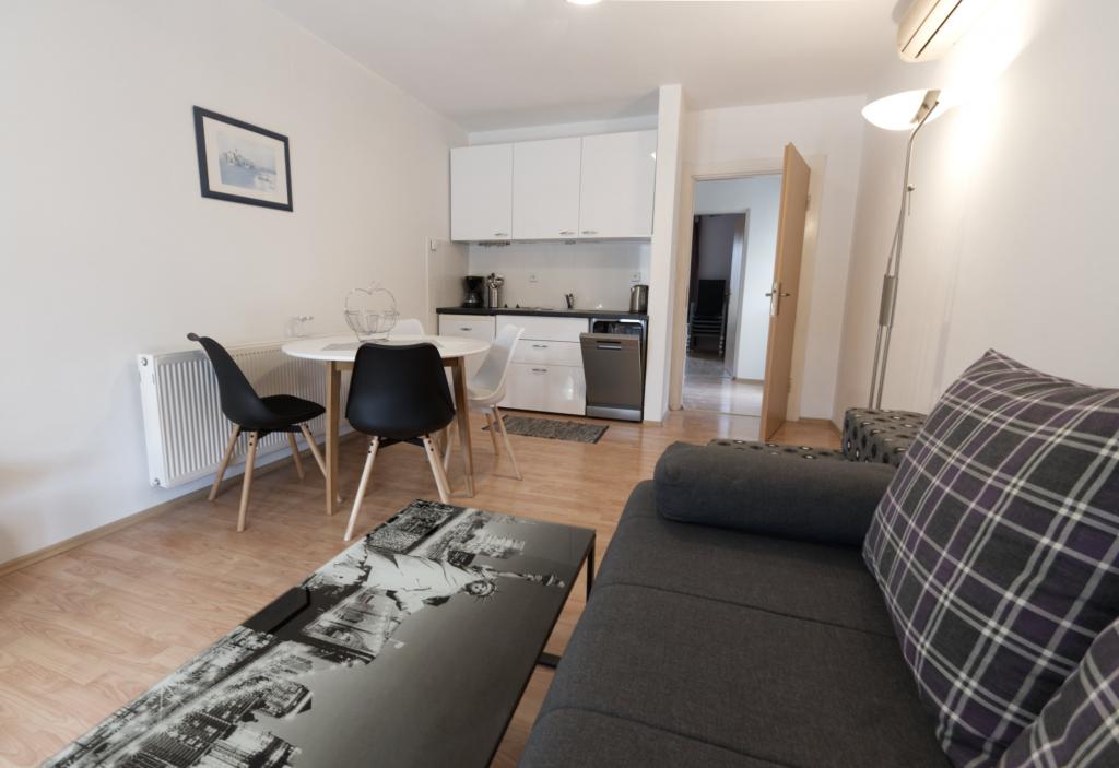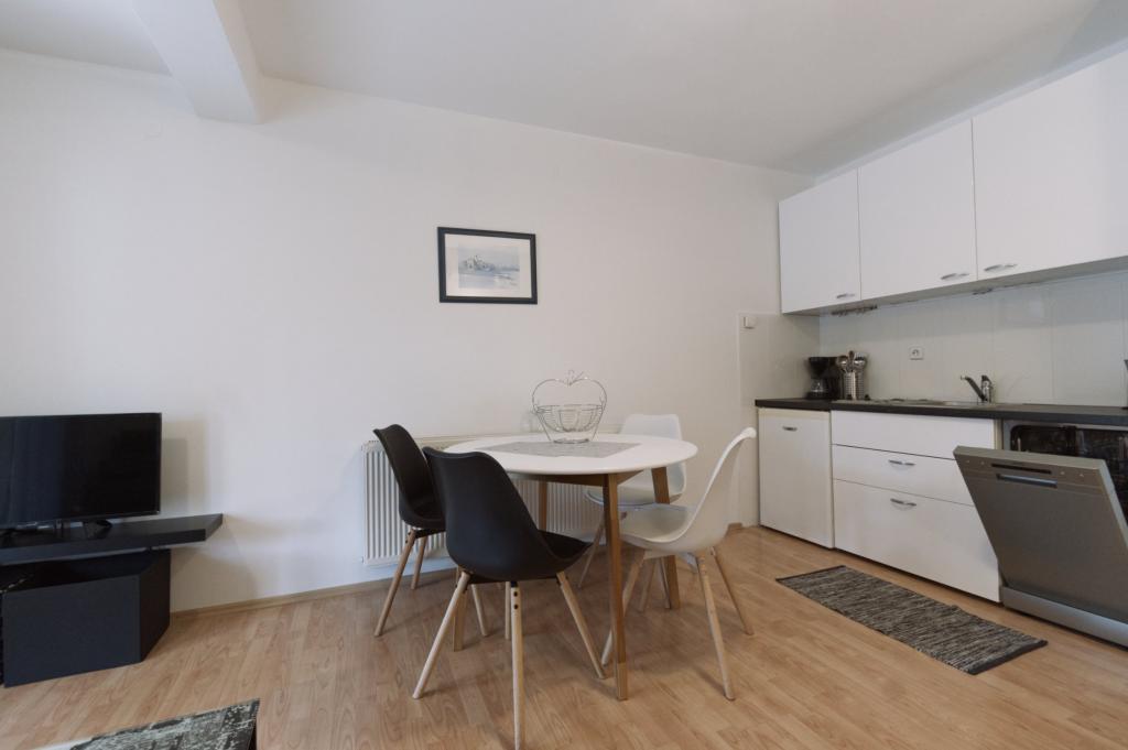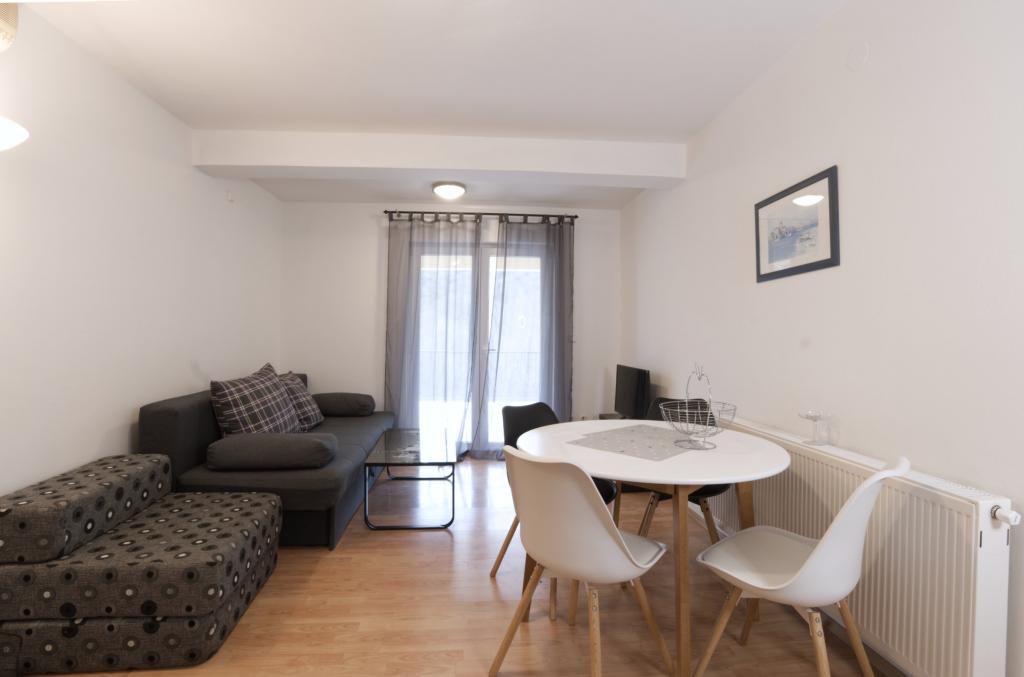 Nowoczesne apartamenty położone są w małej wiosce rybackiej Njivice na wyspie Krk. Njivice oddalone są zaledwie 11 km od lotniska w Rijece. Obiekt położony jest 3 minuty spacerem od centrum miasta i pięknych kamienistych plaż, na których można odpocząć i cieszyć się słońcem i morzem. Miejsce to jest idealne dla rodzin z małymi dziećmi i osób chcących cieszyć się świeżym powietrzem. Apartamenty składają się z jednej sypialni, łazienki, przestronnego salonu z kuchnią i jadalnią, balkonu i pięknego przestronnego tarasu, który jest idealny zarówno na poranną kawę, jak i wieczorny relaks, gdy świeże powietrze pochodzi z lasu. Dzięki rozkładanej sofie w salonie mogą spać dwie dodatkowe osoby. Studio składa się z pokoju dziennego z łóżkiem, jadalni i osobnej kuchni, osobnej łazienki oraz małego zadaszonego tarasu (20m2) przed wejściem.