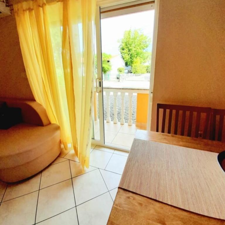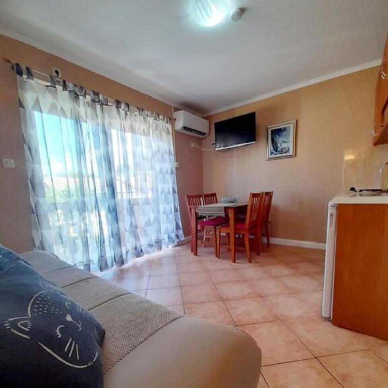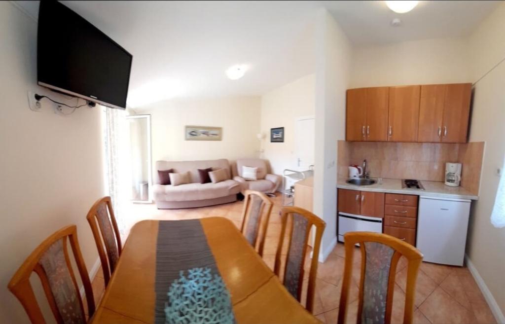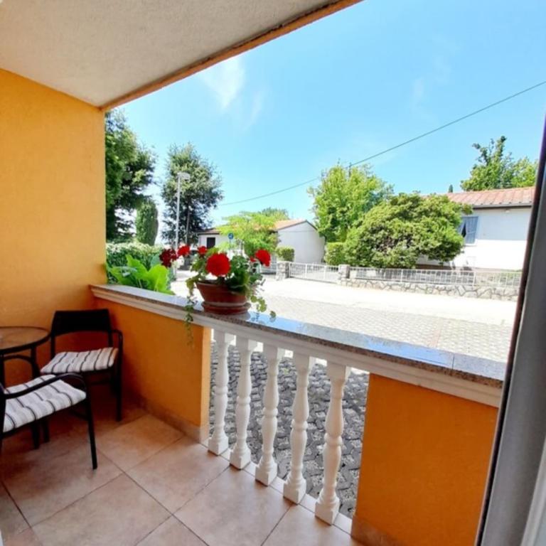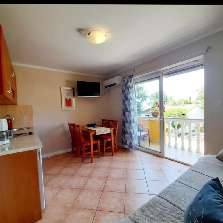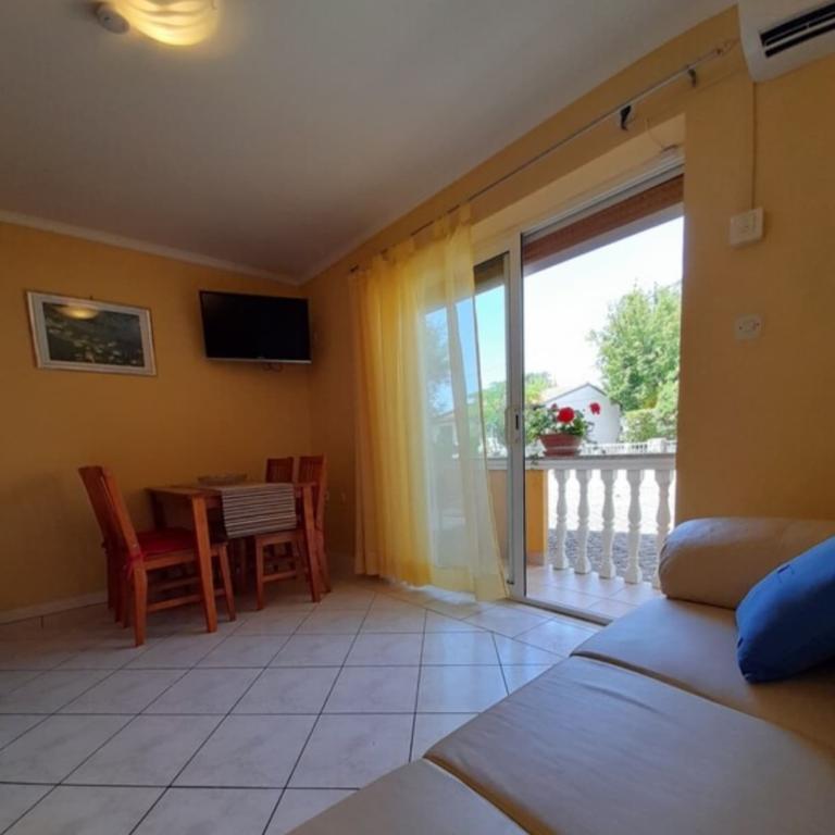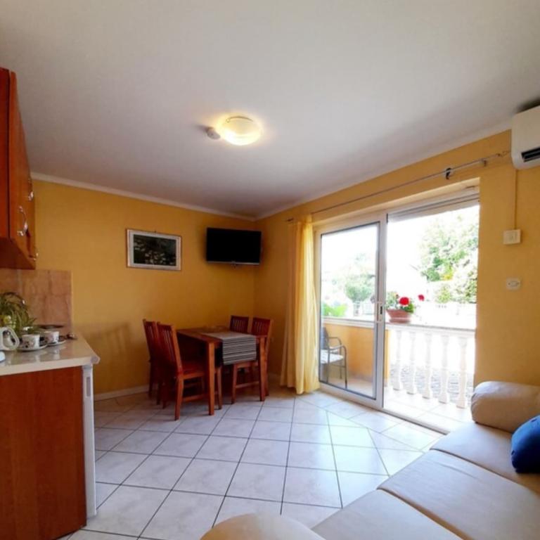 Apartamenty znajdują się w małej miejscowości Njivice na wyspie Krk. Lotnisko w Rijece nie jest daleko od samego miejsca. Plaża znajduje się ok. 300 - 400 m od samego obiektu i od centrum miasteczka. Apartamenty składają się z jednej sypialni, łazienki, przestronnego salonu z kuchnią i jadalnią, balkonu. Dzięki rozkładanej sofie w salonie zapewnia nocleg dla dodatkowej osoby. Apartamenty mają powierzchnię około 35 m2