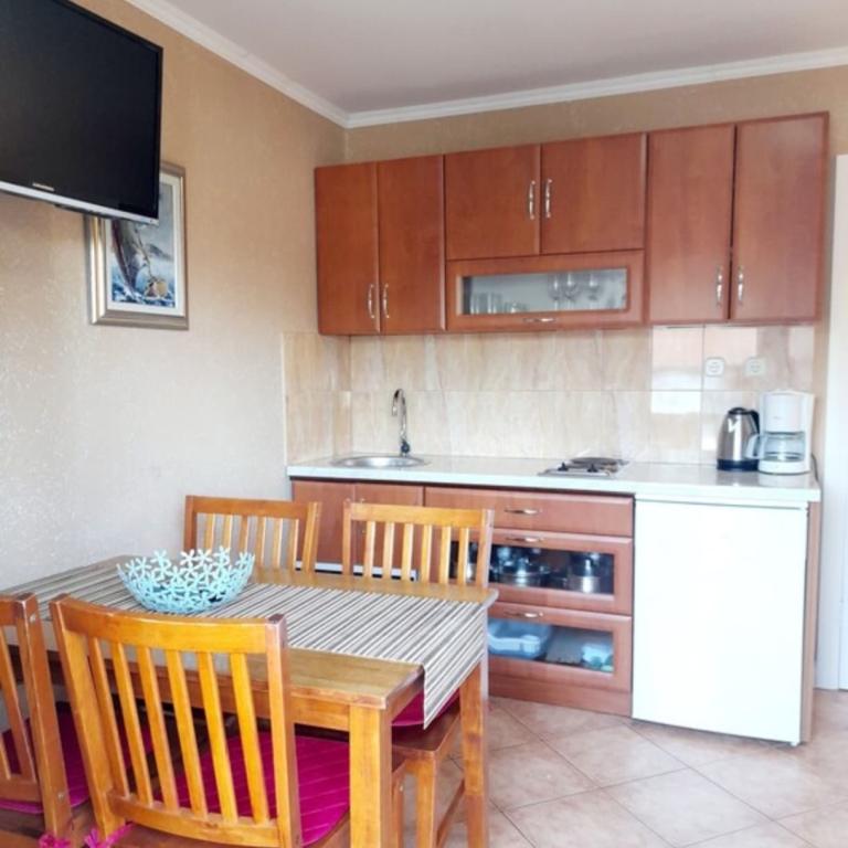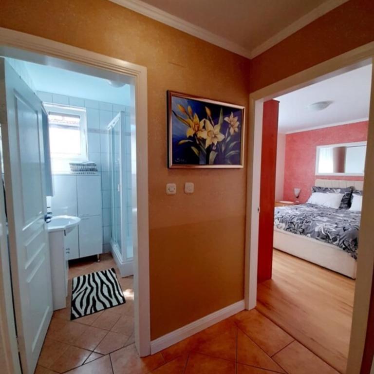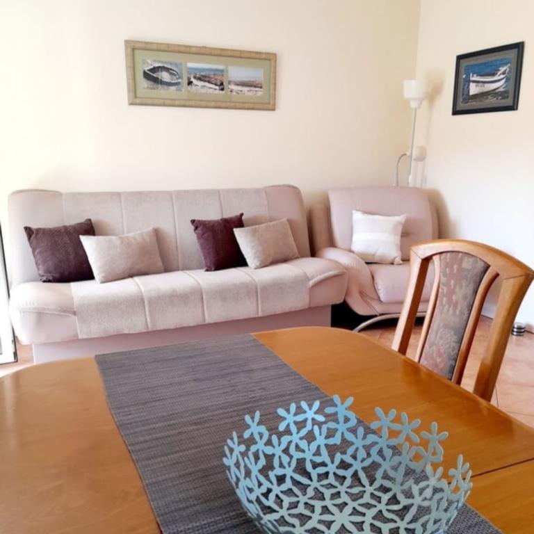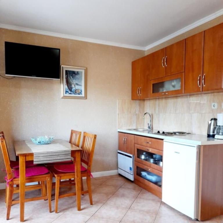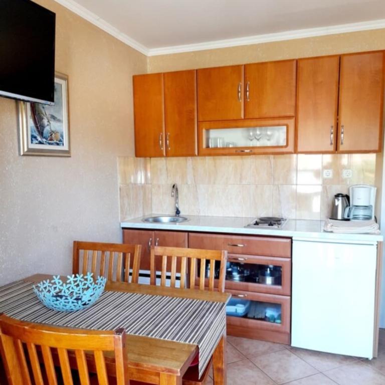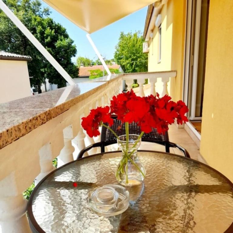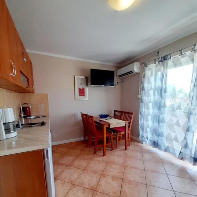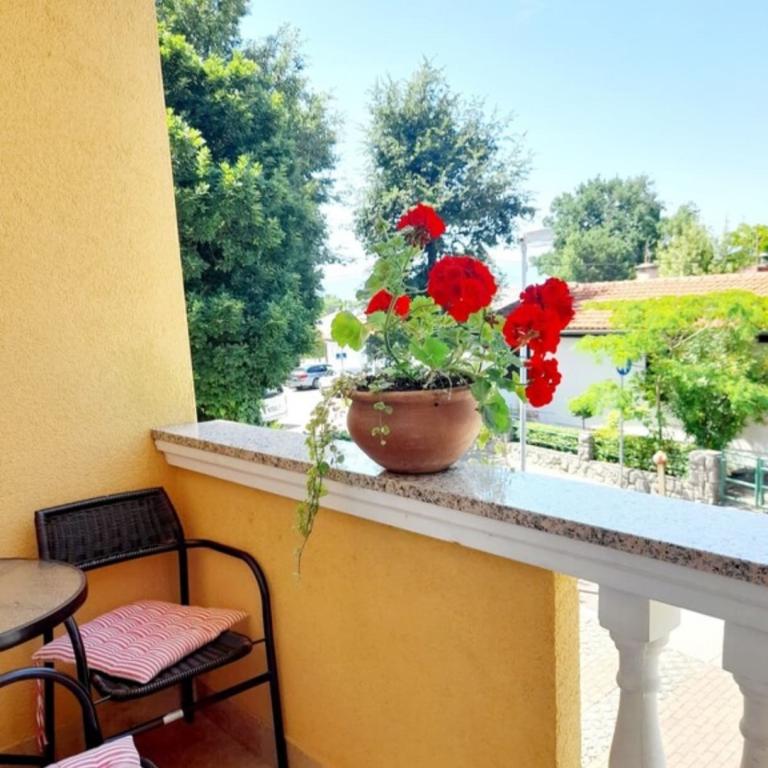 Apartamenty znajdują się w małej miejscowości Njivice na wyspie Krk. Lotnisko w Rijece nie jest daleko od samego miejsca. Plaża znajduje się ok. 300 - 400 m od samego obiektu i od centrum miasteczka. Apartamenty składają się z jednej sypialni, łazienki, przestronnego salonu z kuchnią i jadalnią, balkonu. Dzięki rozkładanej sofie w salonie zapewnia nocleg dla dodatkowej osoby. Apartamenty mają powierzchnię około 35 m2