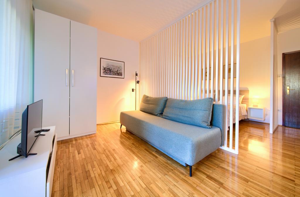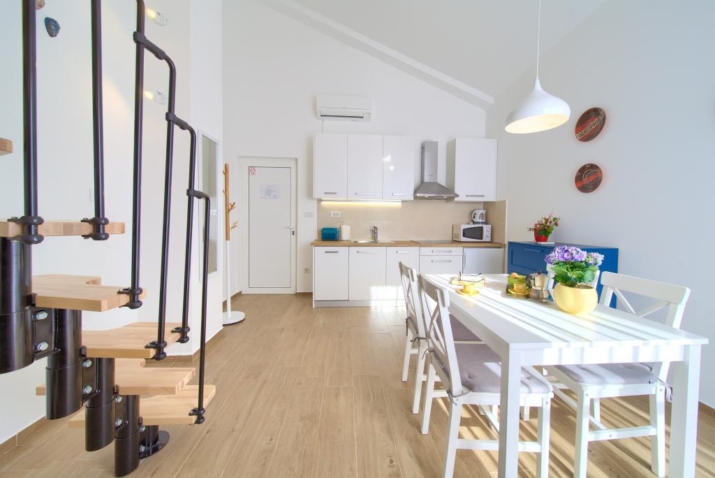 Spędziliśmy 12 dni w studio na dole. Bardzo przestronny, czysty, wyposażony we wszelkie udogodnienia, gustownie urządzony w nowoczesnym stylu. Jest też przestronna weranda, na której można spożywać posiłki i spędzać wolny czas. Ręczniki i pościel są dostępne do zmiany. Bezpłatny parking tuż obok mieszkania. Położenie godne pozazdroszczenia, rzut kamieniem od centrum i morza. Katarina, jej mąż i mama to wspaniali ludzie, zawsze pomocni i mili, a do tego mówią po włosku. Zatrzymaliśmy się z naszym 5 miesięcznym dzieckiem i bardzo nam się podobało, dzięki dużym przestrzeniom i dogodnej lokalizacji. Polecam Apartamenty Meri na wakacje w Njivice