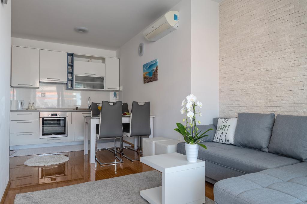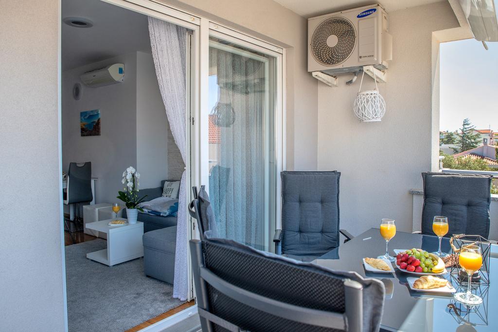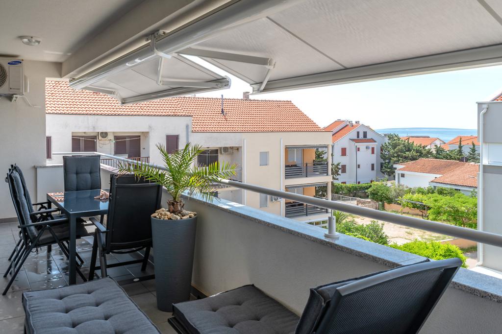 Jesteśmy w doskonałej lokalizacji w Novalji, przy ulicy Primorskiej, 150 m od piaszczystej plaży z krystalicznie czystym morzem, 15 minut łatwego spaceru wzdłuż morza promenadą do centrum Novalji/riva z licznymi barami i placami zabaw dla dzieci. 150 m do piaszczystej plaży Ploče, 8 minut spacerem do plaży Babe. Obie plaże są odpowiednie dla dzieci. Inne piękne plaże na wyspie znajdują się zaledwie kilka minut jazdy samochodem. Mieszkanie składa się z 2 sypialni, kuchni z jadalnią i salonem, łazienki, przedpokoju, dużego tarasu z widokiem na morze oraz miejsca parkingowego. Wszystkie trzy pokoje mają dostęp do tarasu. W pełni wyposażone dla komfortowego pobytu: 2 klimatyzatory, Wi-Fi, płyta szklano-ceramiczna, piekarnik, lodówka z zamrażarką, kuchenka mikrofalowa, zmywarka, pralka, 2 telewizory, pościel, ręczniki, ręczniki kuchenne, czajnik, grill elektryczny, toster , suszarka do włosów, 2 wygodne leżaki na tarasie, parasol plażowy... Mieszkanie nie jest przystosowane do pobytu ze zwierzętami. Powitanie!