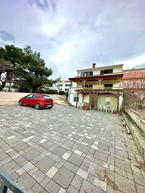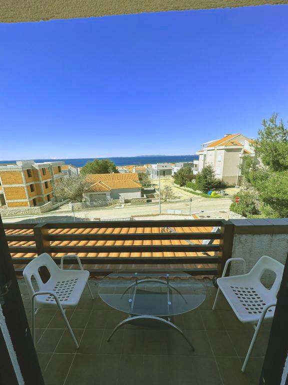 Ładnie urządzony apartament z trzema sypialniami i dodatkowym łóżkiem w salonie. Wszystkie trzy sypialnie wyposażone są w podwójne łóżko i szafę do przechowywania ubrań. Duży salon połączony z kuchnią. Mieszkanie posiada duży taras z widokiem na morze. Przy apartamencie istnieje możliwość skorzystania z grilla. Dla gości przewidziano miejsce parkingowe na podwórzu oraz w bezpośrednim sąsiedztwie apartamentu.