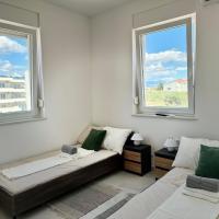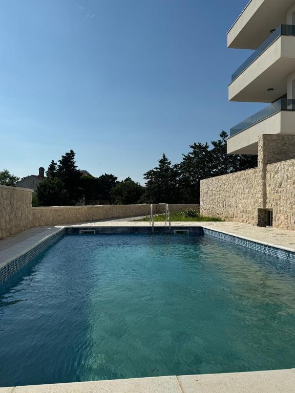 Apartament znajduje się w Novalji na wyspie Pag, niecałe 400 metrów od głównej plaży i centrum miasta. Spacer do wymienionych miejsc zajmuje około 4 minut. W apartamencie dostępne jest bezpłatne WiFi, bezpłatne miejsce parkingowe oraz możliwość korzystania z basenu. Salon i każdy pokój wyposażony jest w klimatyzację i telewizor. Mieszkanie ma jedną łazienkę i oddzielne WC oraz taras z widokiem. Przestronny apartament posiada 2 sypialnie, 2 łazienki, pościel, ręczniki, telewizor z płaskim ekranem i usługami przesyłania strumieniowego, jadalnię, w pełni wyposażoną kuchnię i balkon z widokiem na morze. W obiekcie obowiązuje zakaz palenia. Apartament znajduje się 4 km od najsłynniejszej plaży Zrće. Najbliższe lotnisko znajduje się w Zadarze, 83 km (1 godzina i 20 minut jazdy). Mieszkanie jest nowe z 2024 roku.
