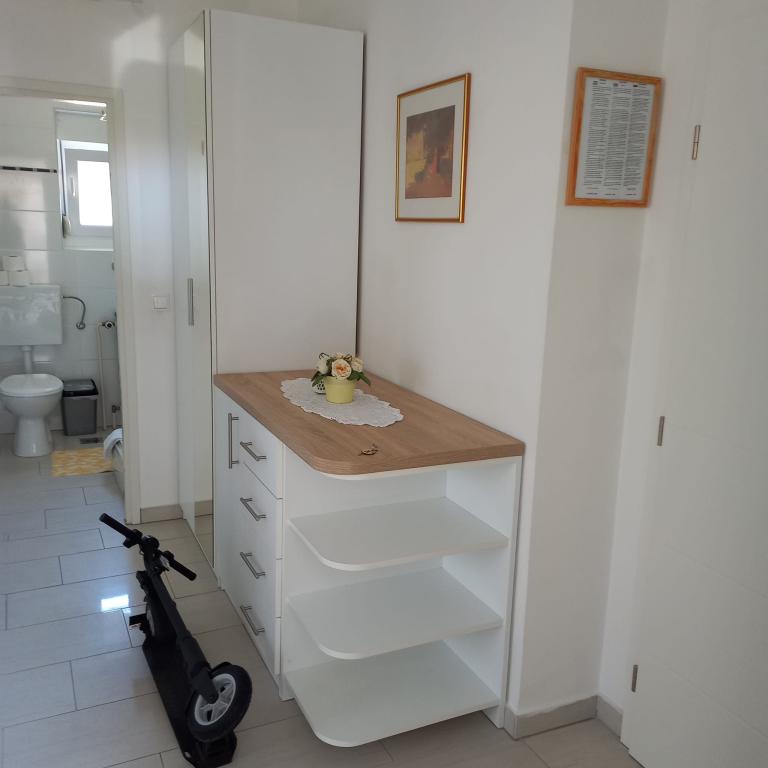 Otoczeni zielenią i swobodną atmosferą, zapraszamy Państwa do spędzenia niezapomnianych wakacji w apartamentach Erika przez cały rok. Oferujemy możliwość śniadań i delektowania się lokalnymi specjałami: jagnięciną, rybami, czerwonym i białym winem, oliwą z oliwek. . Obiekt położony jest 10 minut spacerem od centrum i 5 minut od plaży. Mamy szczerą nadzieję, że zdecydują się Państwo na wakacje w naszych apartamentach, które są do Państwa dyspozycji przez cały rok. Mamy nadzieję, że będziecie Państwo naszymi gośćmi, a my będziemy Państwa gospodarzami. Rodzina Erika Škunca