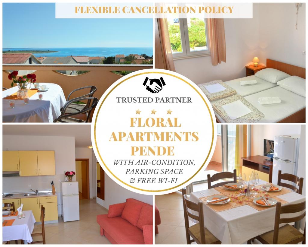 Ta nieruchomość należąca do rodziny Pende oferuje 6 pięknych apartamentów, w pełni wyposażonych w udogodnienia, takie jak klimatyzacja, TV / SAT-TV, bezpłatny bezprzewodowy dostęp do Internetu, grill na świeżym powietrzu oraz taras z niesamowitym widokiem na morze i blisko centrum Novalji. . Oferujemy Państwu apartamenty z jedną lub dwiema sypialniami z podwójnymi lub pojedynczymi łóżkami, wszystkie położone w spokojnej okolicy, ale zaledwie 5-10 minut spacerem od najbliższej plaży lub centrum miasta.