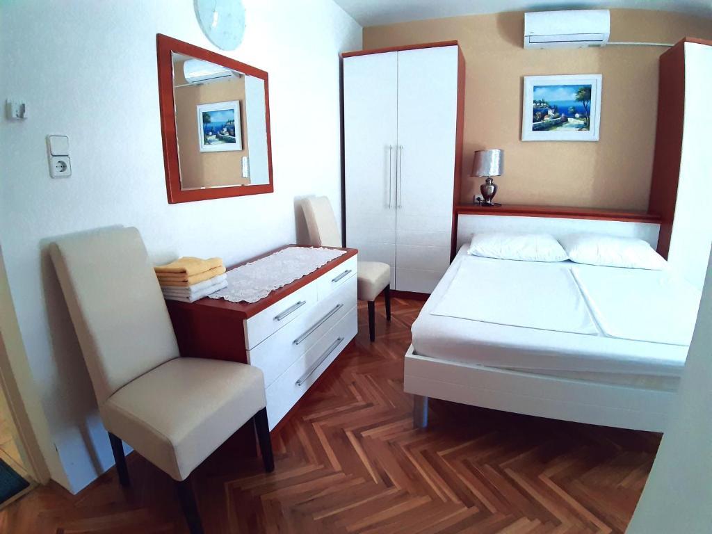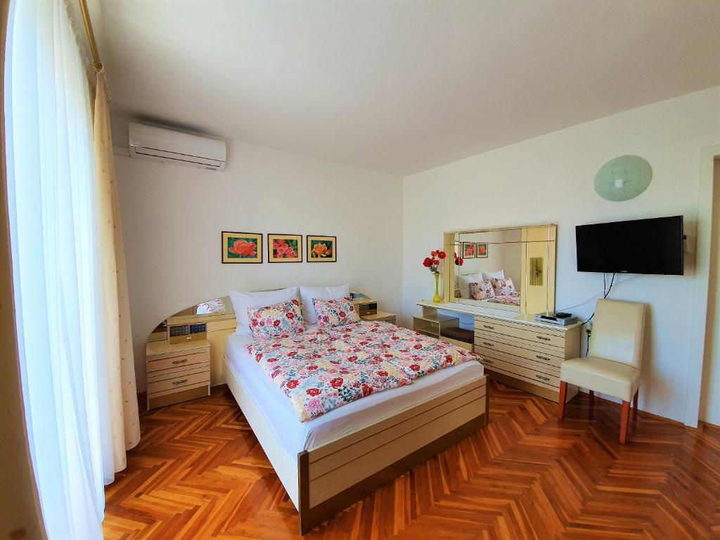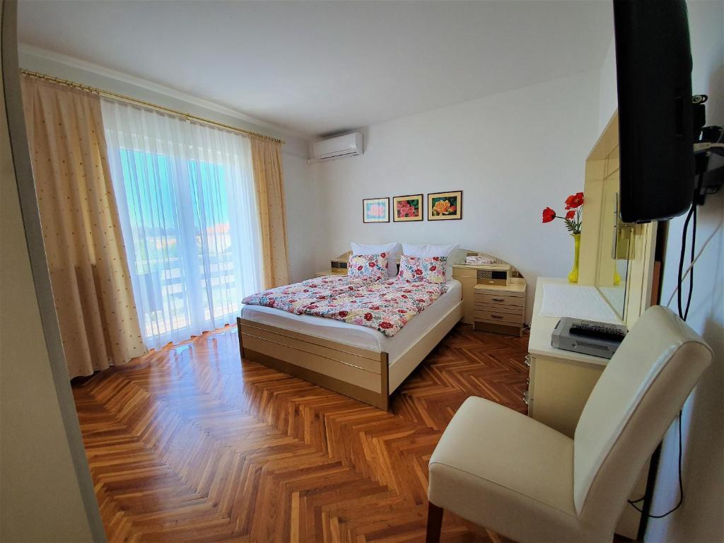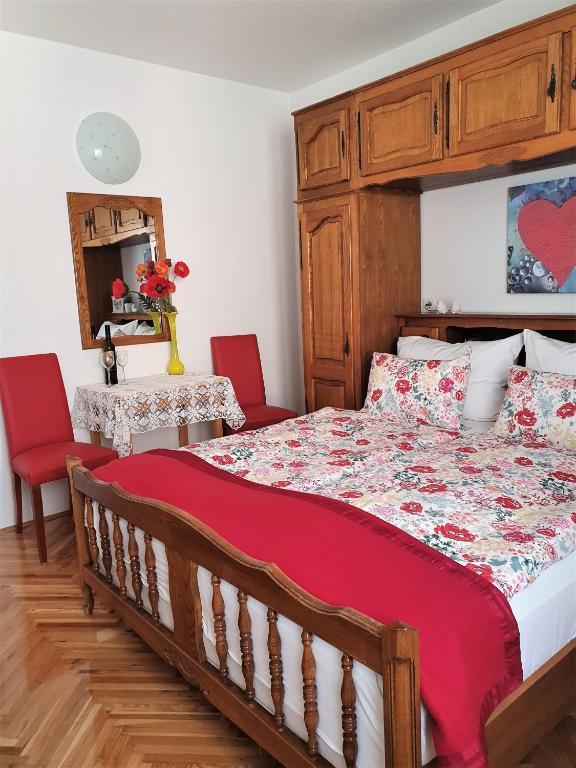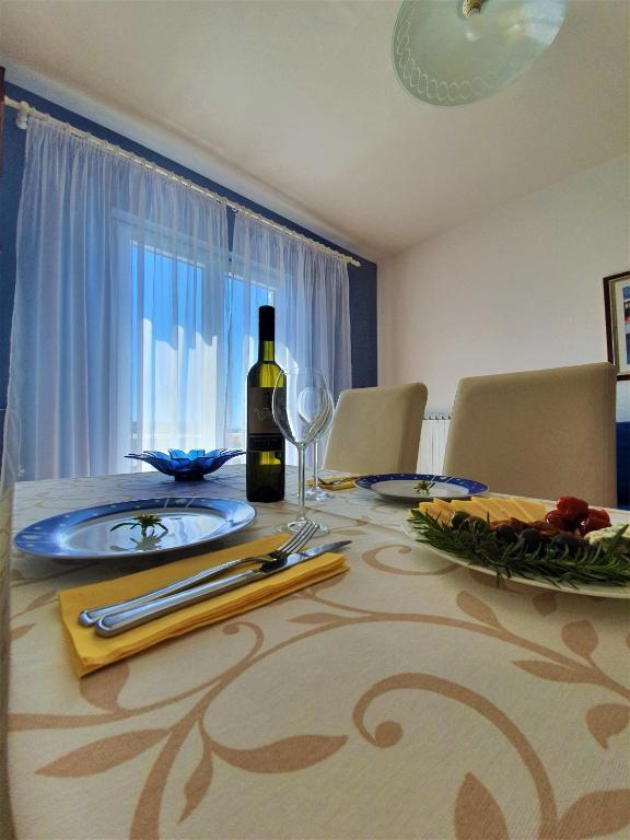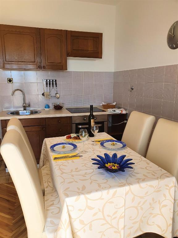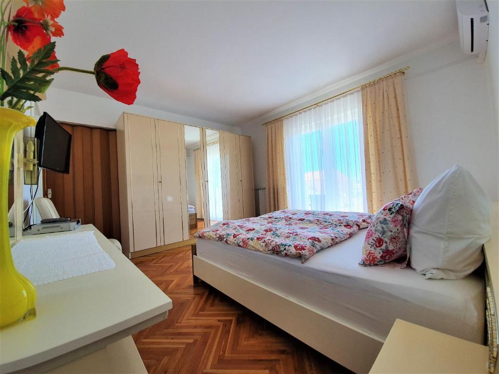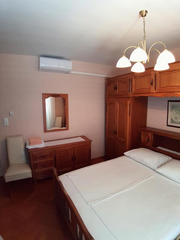 Nasz piękny dom położony jest w spokojnej dzielnicy Novalji, w otoczeniu zieleni, zaledwie 150 m od centrum miasta i 200 m od plaży miejskiej. Z dumą oferujemy Państwu dwa apartamenty, pięć pokoi dwuosobowych i jeden pokój trzyosobowy. Na parterze domu znajduje się przyjemna jadalnia, w której można zjeść śniadanie i kolację, a także taras z pięknym śródziemnomorskim ogrodem i strzeżonym parkingiem. Dla Państwa komfortu dom wyposażony jest w centralne ogrzewanie i jest otwarty przez cały rok. Dla naszych cennych gości przygotowujemy na zamówienie pyszne domowe specjały oraz oferujemy opcję śniadań i obiadokolacji. Drodzy Goście, będzie nam niezmiernie miło, jeśli zechcą Państwo ugościć Państwa w naszym wspaniałym domu. Z wyrazami miłości, Toni i Nada Škunca