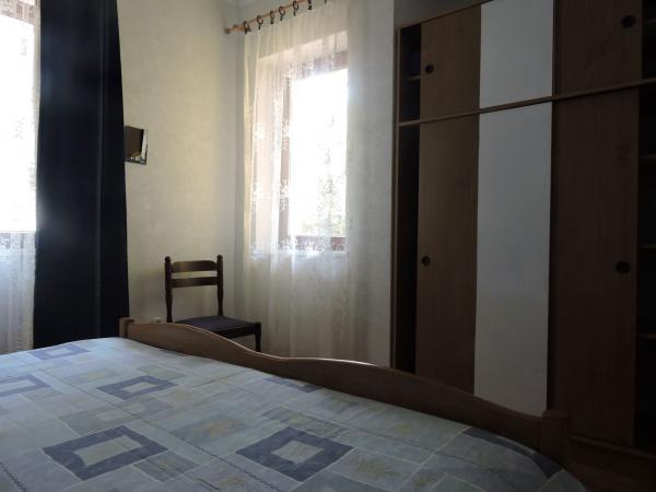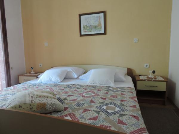 Apartamenty Ivanov znajdują się przy ulicy Ivana Palčića w Novalji, 850 m od centrum i 950 m od najbliższej plaży. Sklepy oddalone są o 700 m. Restauracja o 250 m. Poczta o 950 m, bank o 900 m. Przystanek autobusowy o 300 m. Apartamenty z widokiem na Ogród Oliwny są nowoczesne i w pełni wyposażone w telewizję satelitarną, klimatyzację i bezprzewodowy internet. Przed domem znajduje się bezpłatny parking. Wielu gości oceniło swój pobyt w Apartamentach Ivanov na 9,4. Przychodnia lekarska i apteka znajdują się 300 m od Apartamentów Ivanov. 3 apartamenty jednopokojowe posiadają: przedpokój z garderobą, łazienkę z prysznicem i umywalką. Do dyspozycji Gości są mydło, szampony i suszarka do włosów. W sypialni znajduje się łóżko małżeńskie. W salonie znajduje się kuchnia, telewizor i klimatyzacja. Balkon wyposażony jest w zestaw mebli, stół i krzesła. 1 apartament z dwiema sypialniami ma dwie sypialnie i dwa balkony, łazienkę, korytarz i salon z kuchnią.