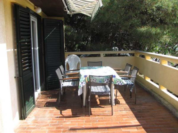 W pełni wyposażone i nowoczesne mieszkanie 200 metrów od centrum i 300 m od morza, w spokojnej okolicy z dużą ilością zieleni i miejsc parkingowych. Znajduje się na 1 piętrze z osobnym wejściem, 3 sypialni, dużego otwarcia salonu na taras z markizą i grillem. Posiada również 2 łazienki jedna z wanną druga z prysznicem, klimatyzację, telewizję satelitarną oraz bezpłatnym dostępem do Internetu. Kuchnia wyposażona jest w kuchenkę, lodówkę, kuchenkę mikrofalową i wszystkie niezbędne przybory. pralnia i łóżeczko dziecięce na życzenie.