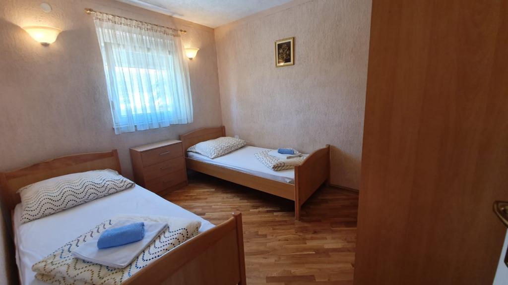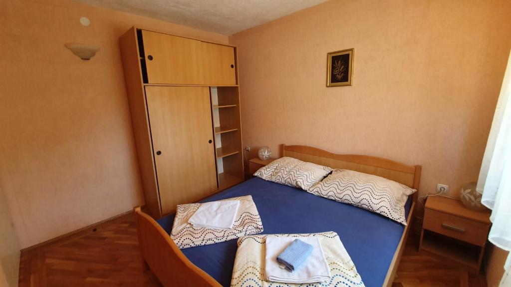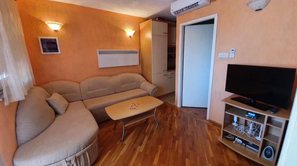 W pełni wyposażony apartament w Novalji na wyspie Pag, zaledwie 300 metrów od morza i centrum miasta. W bezpośrednim sąsiedztwie, zaledwie 50 metrów od apartamentu, znajduje się piekarnia, rzeźnik, park rozrywki odpowiedni dla dzieci, restauracja i dworzec autobusowy, z którego kursują autobusy do centrum miasta i na popularną plażę Zrce. Około 300 metrów od apartamentu znajduje się zadbana plaża miejska oraz liczne restauracje i inne obiekty oraz duże centrum handlowe Plodine. W samym mieście znajduje się kilka banków, poczta i wiele bankomatów do wypłat gotówki. Mieszkanie ma dwie oddzielne sypialnie, jedną z dużym podwójnym łóżkiem i jedną z dwoma mniejszymi łóżkami. Kuchnia wyposażona jest w zamrażarkę, płytę grzejną i piekarnik oraz wszystkie niezbędne przybory kuchenne. W salonie znajduje się rozkładana sofa, którą można wykorzystać do spania oraz telewizor. Na tarasie znajduje się duży stół i markiza, która służy do ochrony przed słońcem. Drodzy goście, witamy w naszym apartamencie !!!