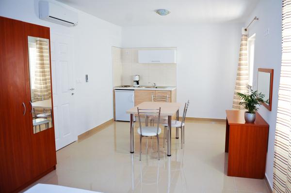 Bungalow: Bungalow to osobny budynek (obiekt wypoczynkowy), właściwie mały domek znajdujący się blisko centrum i mający widok na morze. Ma własny taras i miejsce parkingowe. Bungalow wyposażony jest w klimatyzację i sygnał WiFi. Zakwaterowanie w bungalowie jest odpowiednie dla trzech osób. Apartamenty typu studio Apartamenty typu studio są klimatyzowane i posiadają sygnał Wi-Fi. Znajdują się blisko centrum Novalji i oddalone są od morza 100 m. W jednym pomieszczeniu znajduje się wyposażony aneks kuchenny i łóżko dla dwóch osób (łóżko małżeńskie). Każdy apartament typu studio posiada łazienkę z WC, w której znajduje się brodzik. W bezpośredniej odległości od obiektu znajduje się plaża miejska i restauracje. Każdy apartament typu studio ma zapewnione miejsce parkingowe. Więcej informacji można znaleźć na naszej stronie internetowej poniżej.