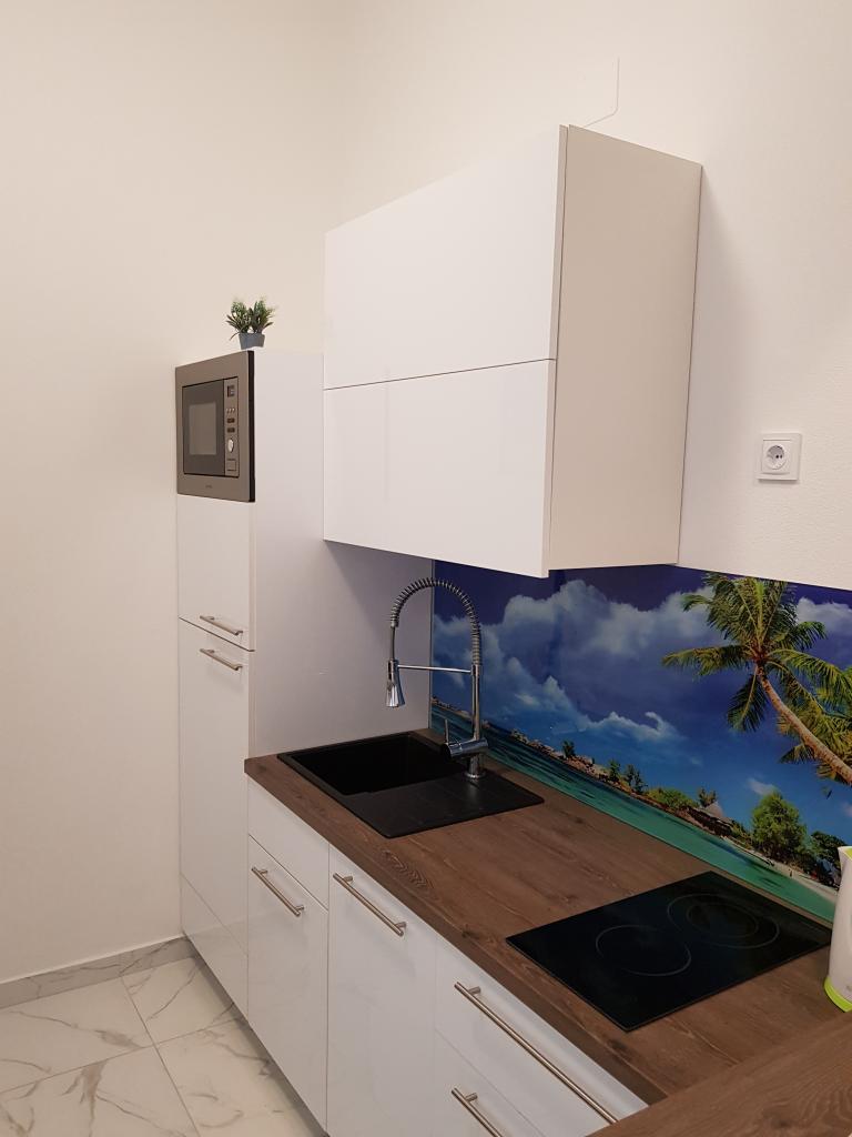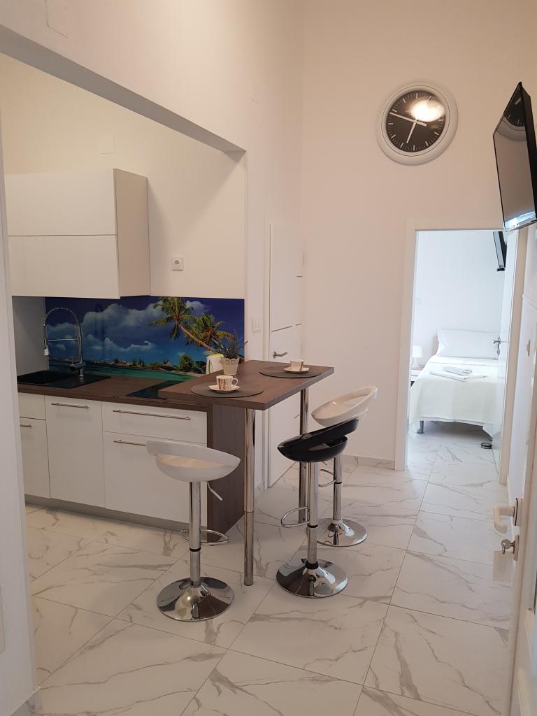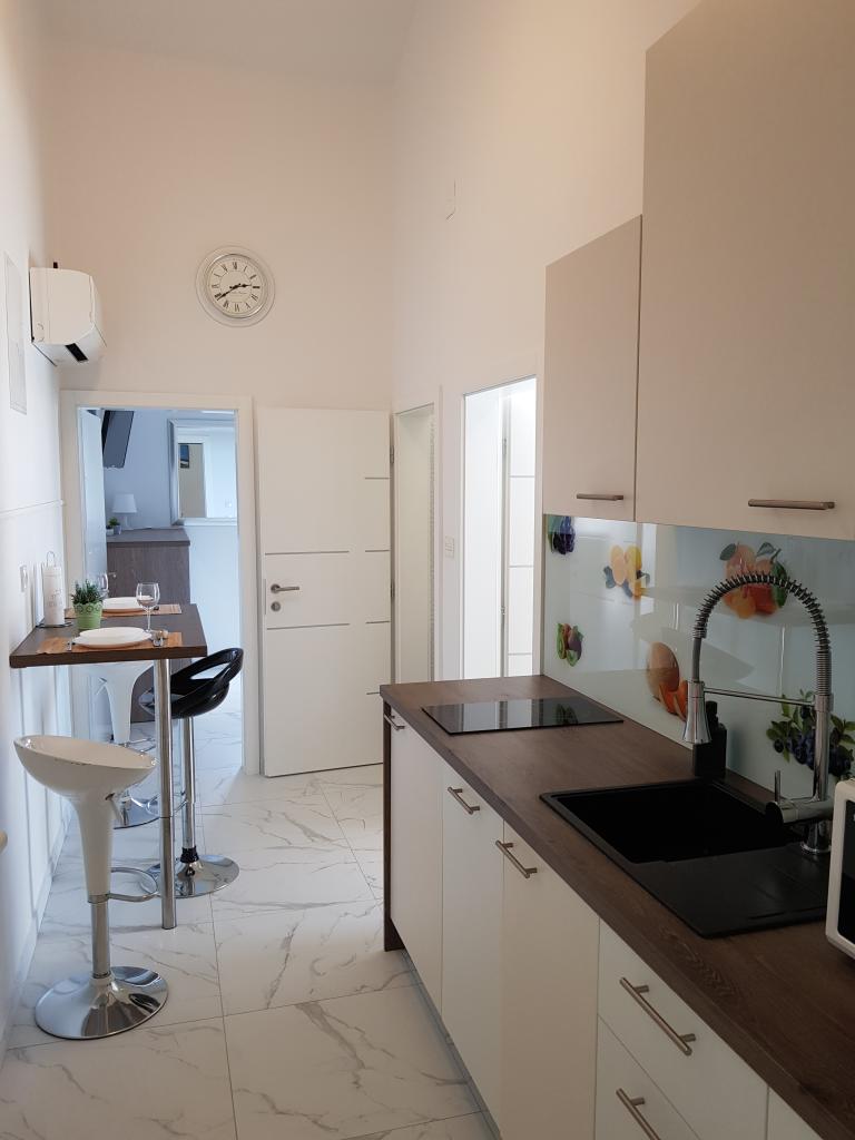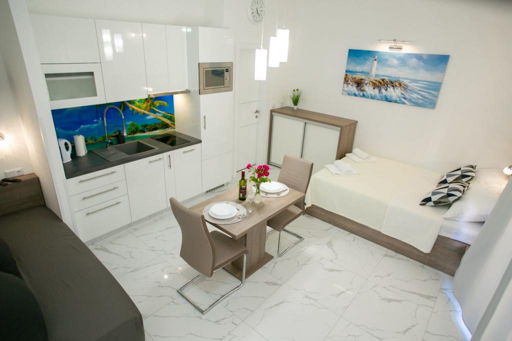 Nowocześnie urządzone apartamenty z w pełni wyposażoną kuchnią, czajnikiem, tosterem, kuchenką mikrofalową, ekspresem do kawy, w każdym apartamencie znajduje się żelazko, sejf i suszarka do włosów.