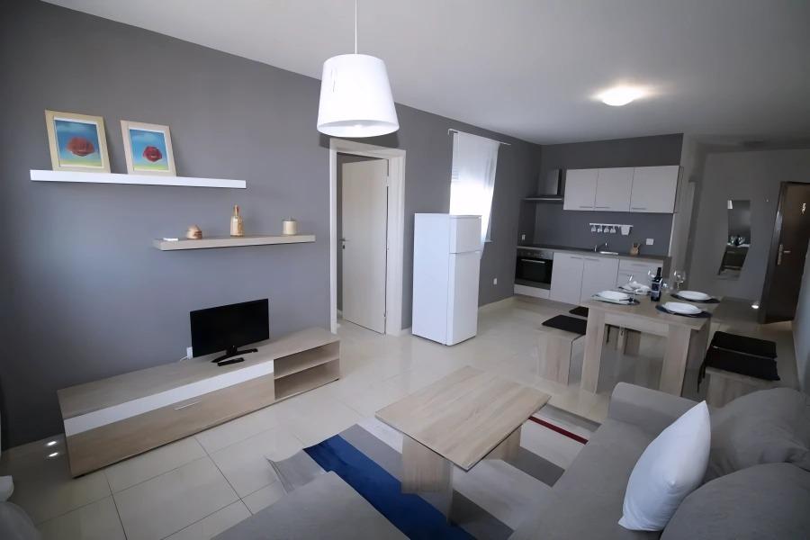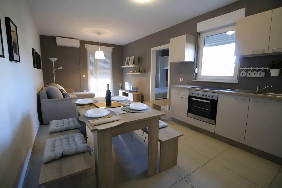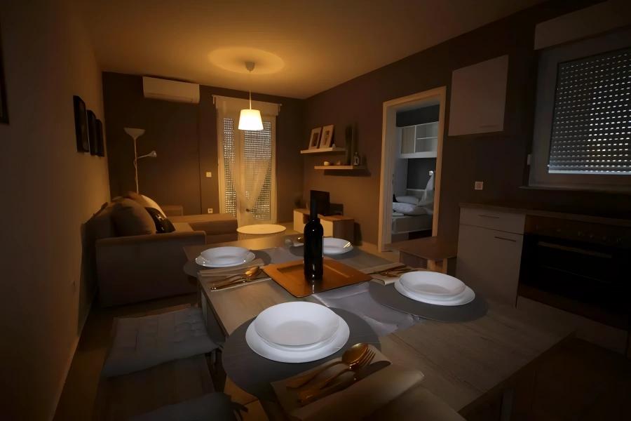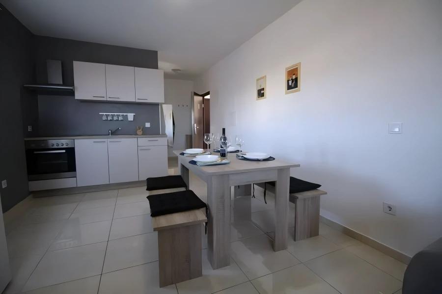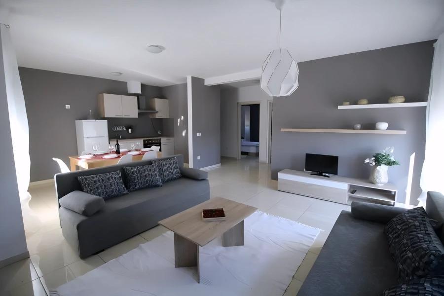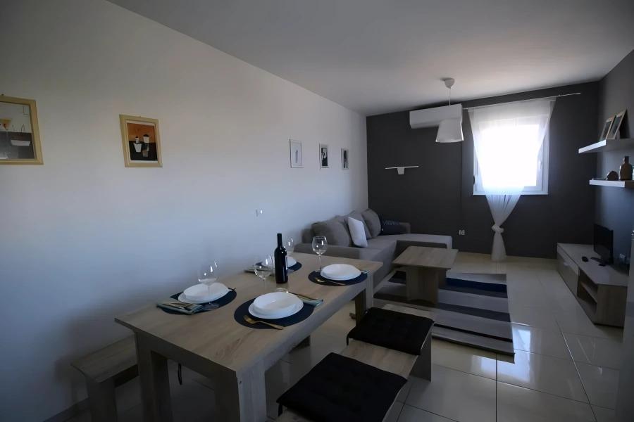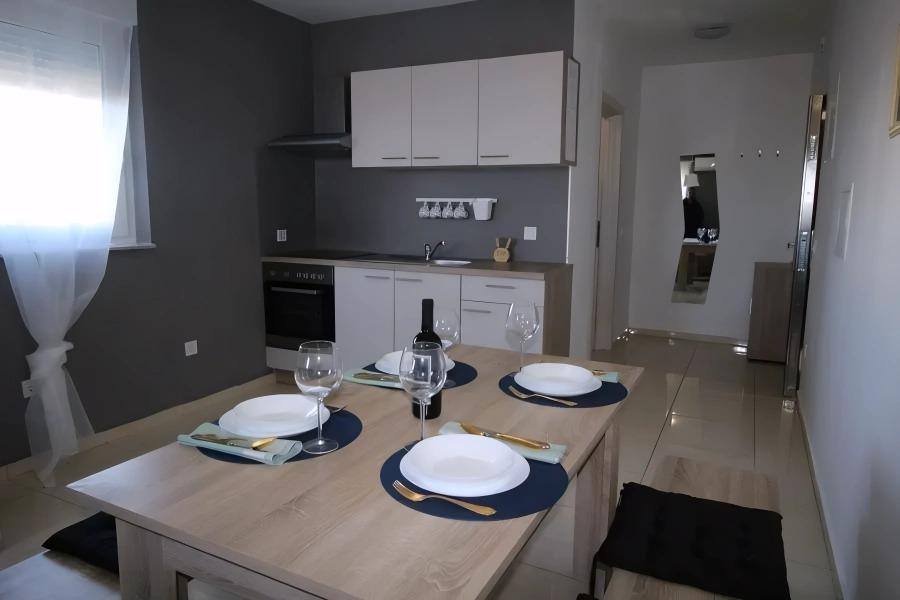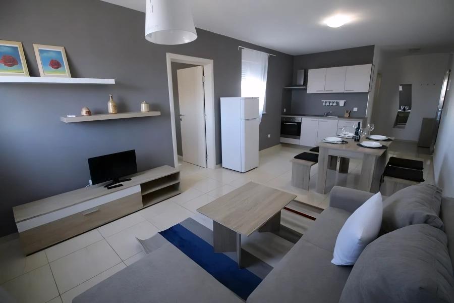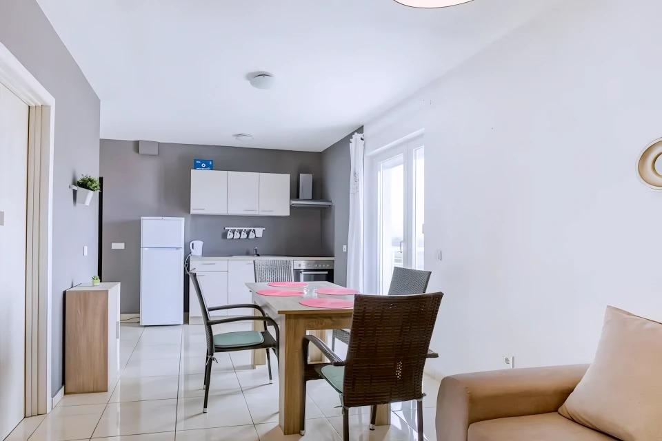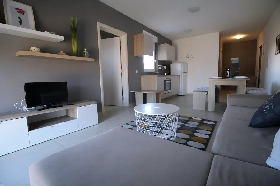 Apartamenty Sun Mauro położone są w spokojnej okolicy w Novalji. Znajdują się zaledwie 1000 metrów od centrum, dzięki czemu możesz cieszyć się ciszą i być blisko wszystkich udogodnień, jakie oferuje to miasto. Mniej niż 10 minut jazdy samochodem do festiwalu - 2,4 km od miejsca wydarzenia. Z dworca autobusowego wzdłuż ulicy naprzeciwko apartamentów kursuje autobus kursujący bezpośrednio na plażę Zrće. Apartamenty mieszczą się w nowym, nowoczesnym budynku. Jest 8 apartamentów. (pojemność od 4 do 8 osób). Każdy apartament dla 4 osób jest klimatyzowany i posiada bezpłatne Wi-Fi, telewizję satelitarną, wyposażoną kuchnię, salon, sypialnię i łazienkę. Apartamenty dla 6-8 osób (i w razie potrzeby jeszcze jednej osoby) również mają takie same warunki, ale różnią się tym, że mają dwie sypialnie, a niektóre apartamenty mają także dwie łazienki. Większość apartamentów posiada piękne tarasy z widokiem na morze i miasto, wyposażone w meble wypoczynkowe.