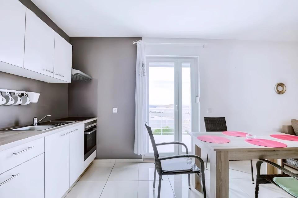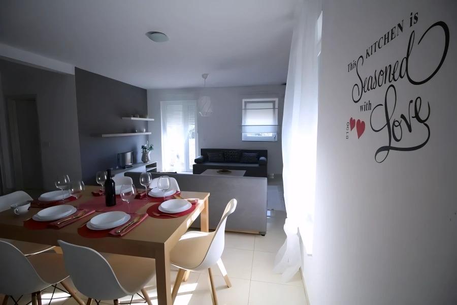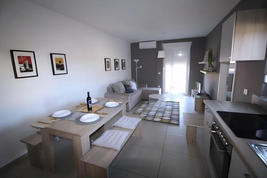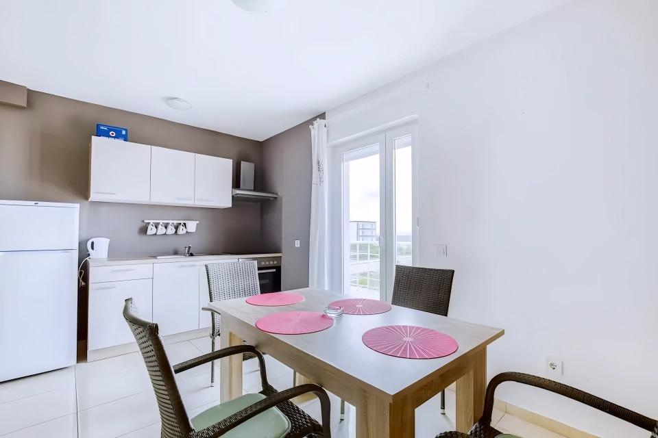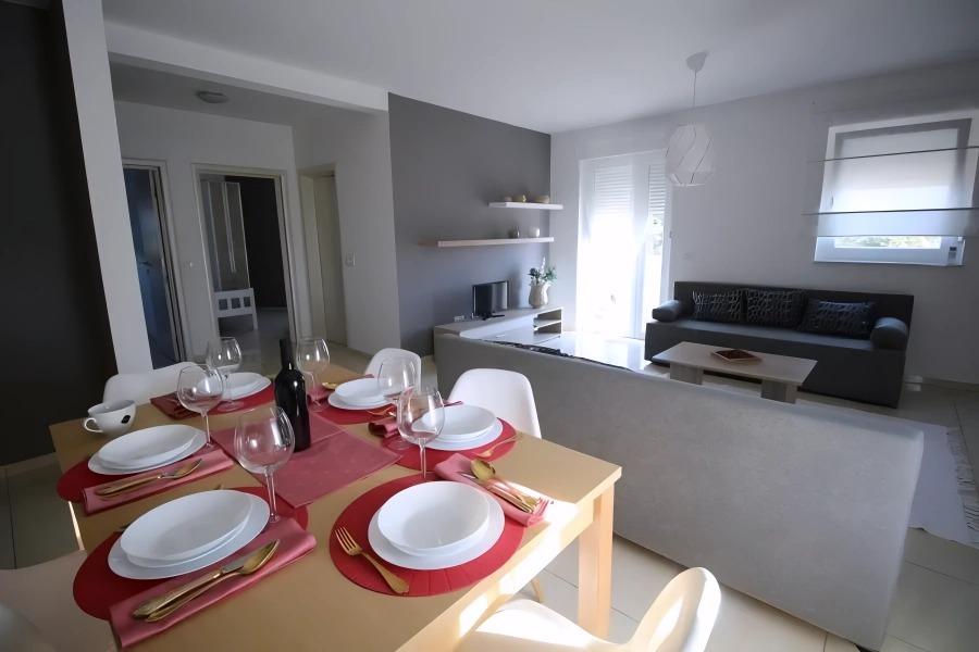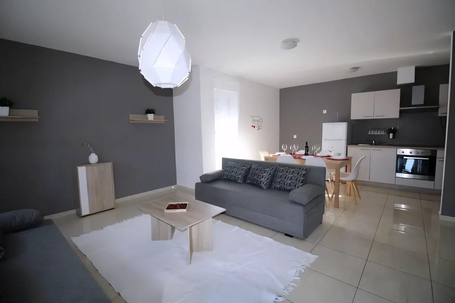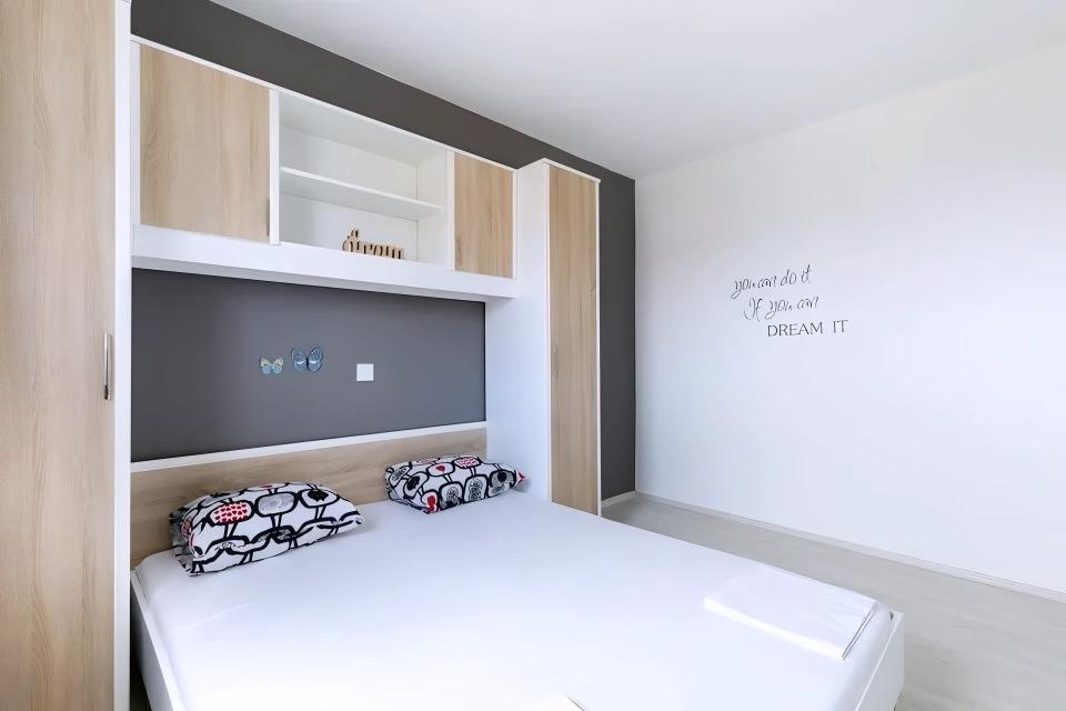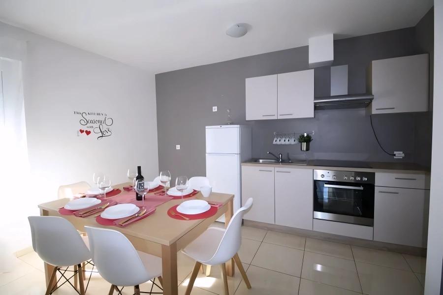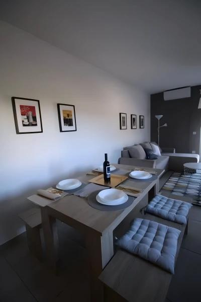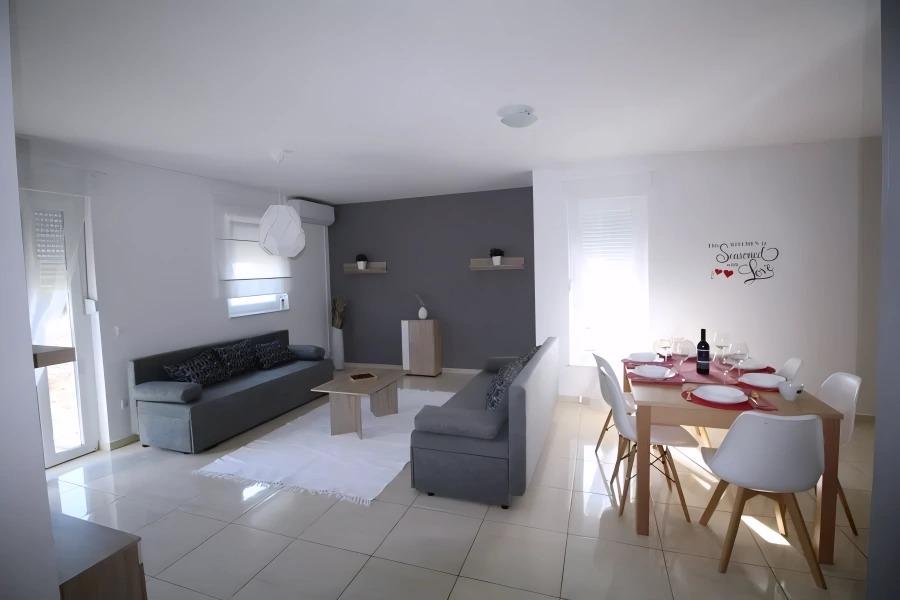 Apartamenty Sun Mauro położone są w spokojnej okolicy w Novalji. Znajdują się zaledwie 1000 metrów od centrum, dzięki czemu możesz cieszyć się ciszą i być blisko wszystkich udogodnień, jakie oferuje to miasto. Mniej niż 10 minut jazdy samochodem do festiwalu - 2,4 km od miejsca wydarzenia. Z dworca autobusowego wzdłuż ulicy naprzeciwko apartamentów kursuje autobus kursujący bezpośrednio na plażę Zrće. Apartamenty mieszczą się w nowym, nowoczesnym budynku. Jest 8 apartamentów. (pojemność od 4 do 8 osób). Każdy apartament dla 4 osób jest klimatyzowany i posiada bezpłatne Wi-Fi, telewizję satelitarną, wyposażoną kuchnię, salon, sypialnię i łazienkę. Apartamenty dla 6-8 osób (i w razie potrzeby jeszcze jednej osoby) również mają takie same warunki, ale różnią się tym, że mają dwie sypialnie, a niektóre apartamenty mają także dwie łazienki. Większość apartamentów posiada piękne tarasy z widokiem na morze i miasto, wyposażone w meble wypoczynkowe.