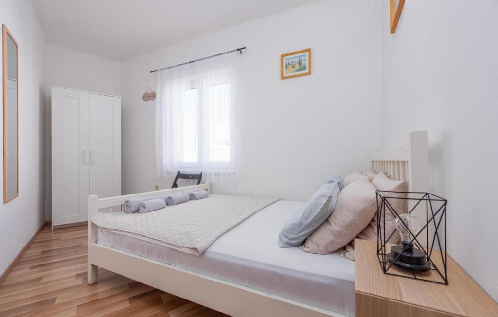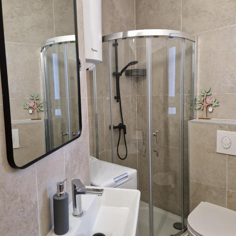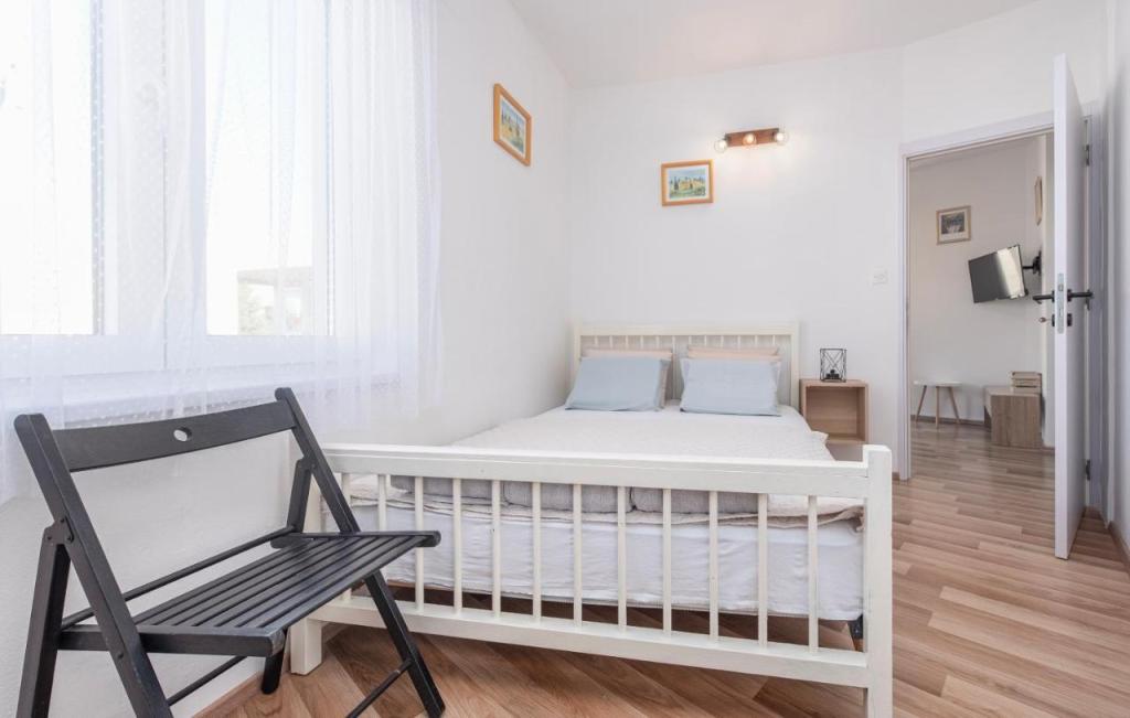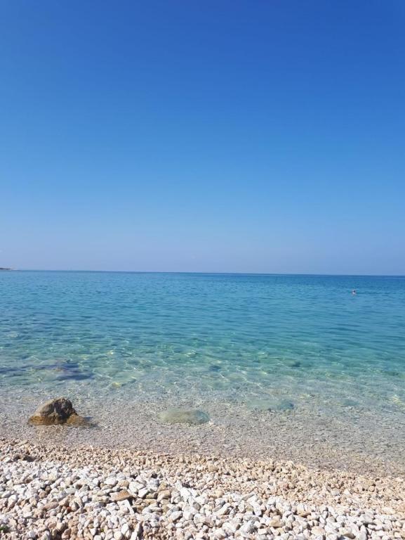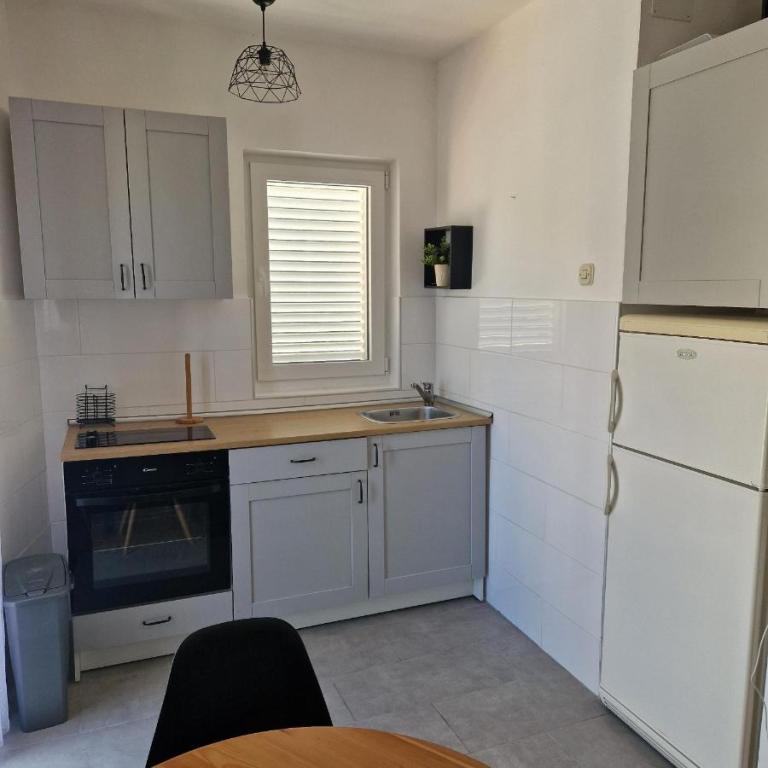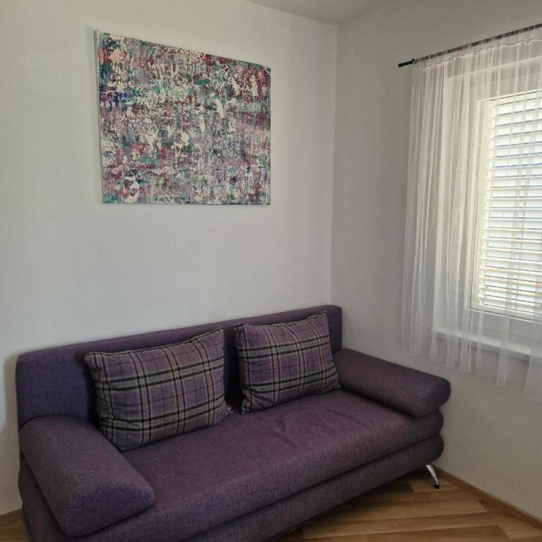 Oferta wynajmu apartamentów obejmuje 2 apartamenty, położone w bezpośrednim sąsiedztwie plaży (ok. 200m). Apartament TIN znajduje się na pierwszym piętrze (pojemność 4 osób), apartament IVA znajduje się na drugim piętrze (pojemność 4 osób). Apartamenty składają się z sypialni z łóżkiem podwójnym, salonu z dużą rozkładaną sofą i telewizorem, w pełni wyposażonej kuchni z płytą grzejną i piekarnikiem oraz niedawno odnowionej łazienki z pralką. Dom otoczony jest zielenią, z balkonu roztacza się widok na morze. Apartamenty wyposażone są we wszystko, co potrzebne do przyjemnego wypoczynku, posiadają klimatyzację i sieć WIFI. Na podwórku dostępny jest grill i stół, a także bezpłatny parking. Do centrum Novalji można dotrzeć pięknie zagospodarowaną promenadą (kioski, piekarnia, sklepy i restauracje). Apartament jest oddalony o około 15 minut spacerem od centrum Novalji i 5 minut od plaży, na której znajduje się przystanek autobusowy jadący do Zrče.