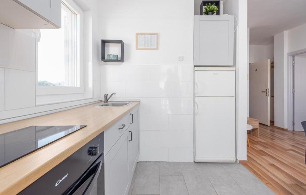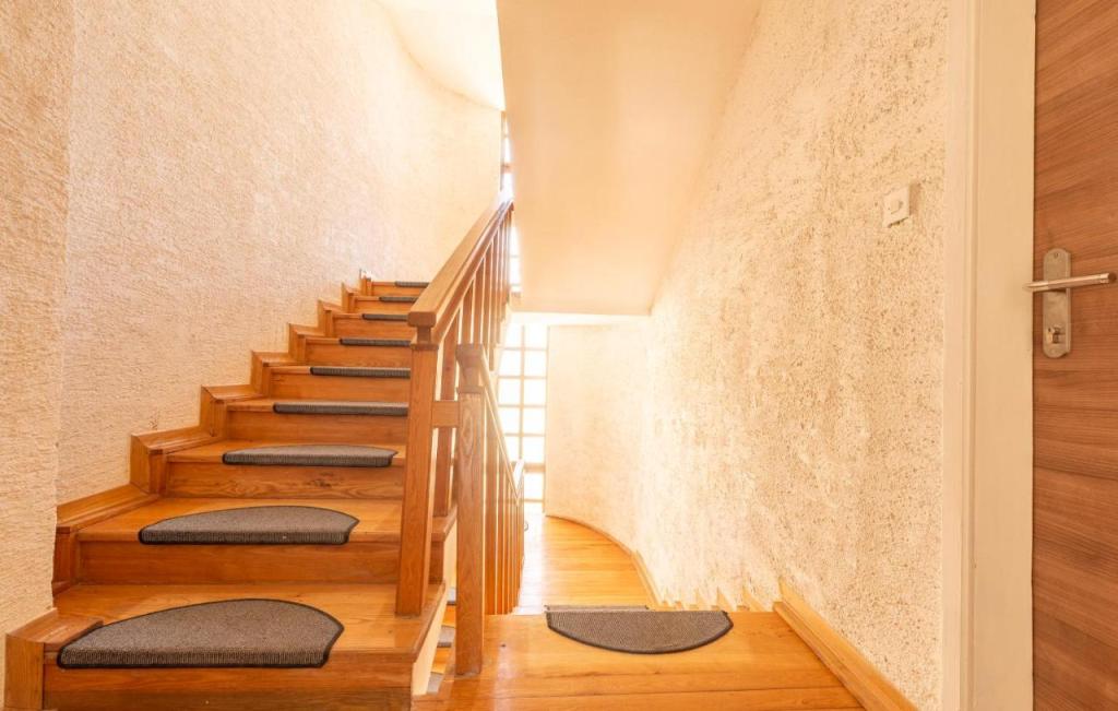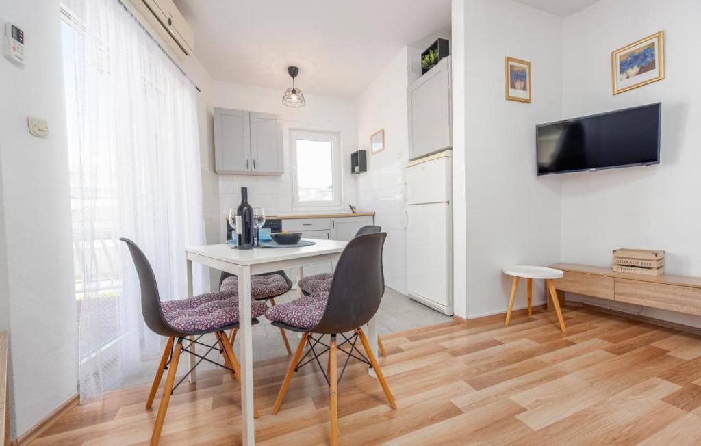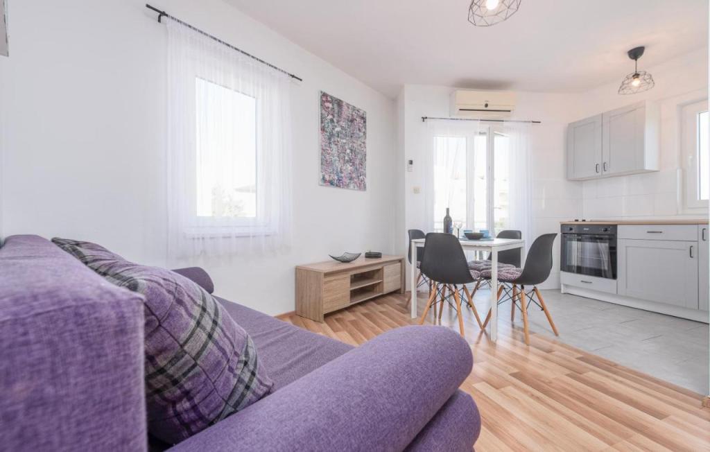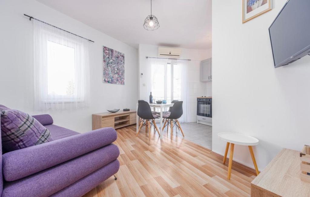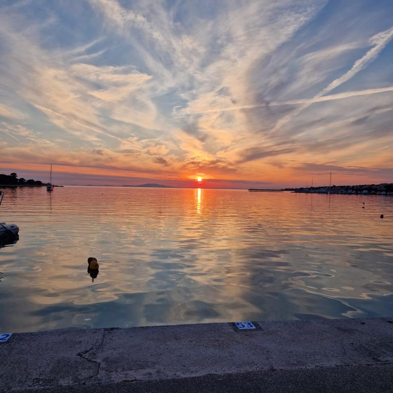 Oferta wynajmu apartamentów obejmuje 2 apartamenty, położone w bezpośrednim sąsiedztwie plaży (ok. 200m). Apartament TIN znajduje się na pierwszym piętrze (pojemność 4 osób), apartament IVA znajduje się na drugim piętrze (pojemność 4 osób). Apartamenty składają się z sypialni z łóżkiem podwójnym, salonu z dużą rozkładaną sofą i telewizorem, w pełni wyposażonej kuchni z płytą grzejną i piekarnikiem oraz niedawno odnowionej łazienki z pralką. Dom otoczony jest zielenią, z balkonu roztacza się widok na morze. Apartamenty wyposażone są we wszystko, co potrzebne do przyjemnego wypoczynku, posiadają klimatyzację i sieć WIFI. Na podwórku dostępny jest grill i stół, a także bezpłatny parking. Do centrum Novalji można dotrzeć pięknie zagospodarowaną promenadą (kioski, piekarnia, sklepy i restauracje). Apartament jest oddalony o około 15 minut spacerem od centrum Novalji i 5 minut od plaży, na której znajduje się przystanek autobusowy jadący do Zrče.