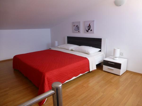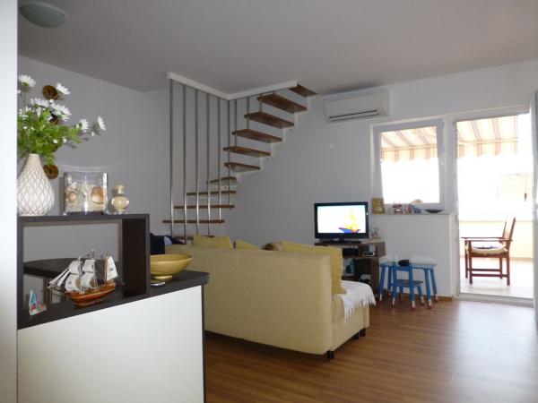 Mieszkanie duże i bardzo ładne i nowocześnie wyposażone. Duży zadaszony taras z pięknym widokiem na morze. Właściciele bardzo przyjaźni! Nasledjo roku, na pewno tam wrócimy!