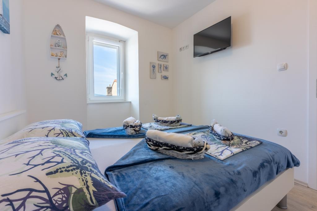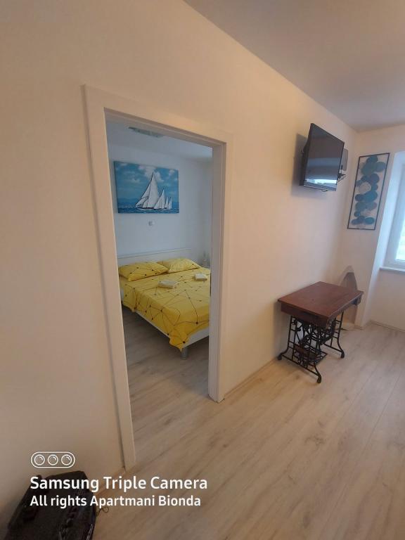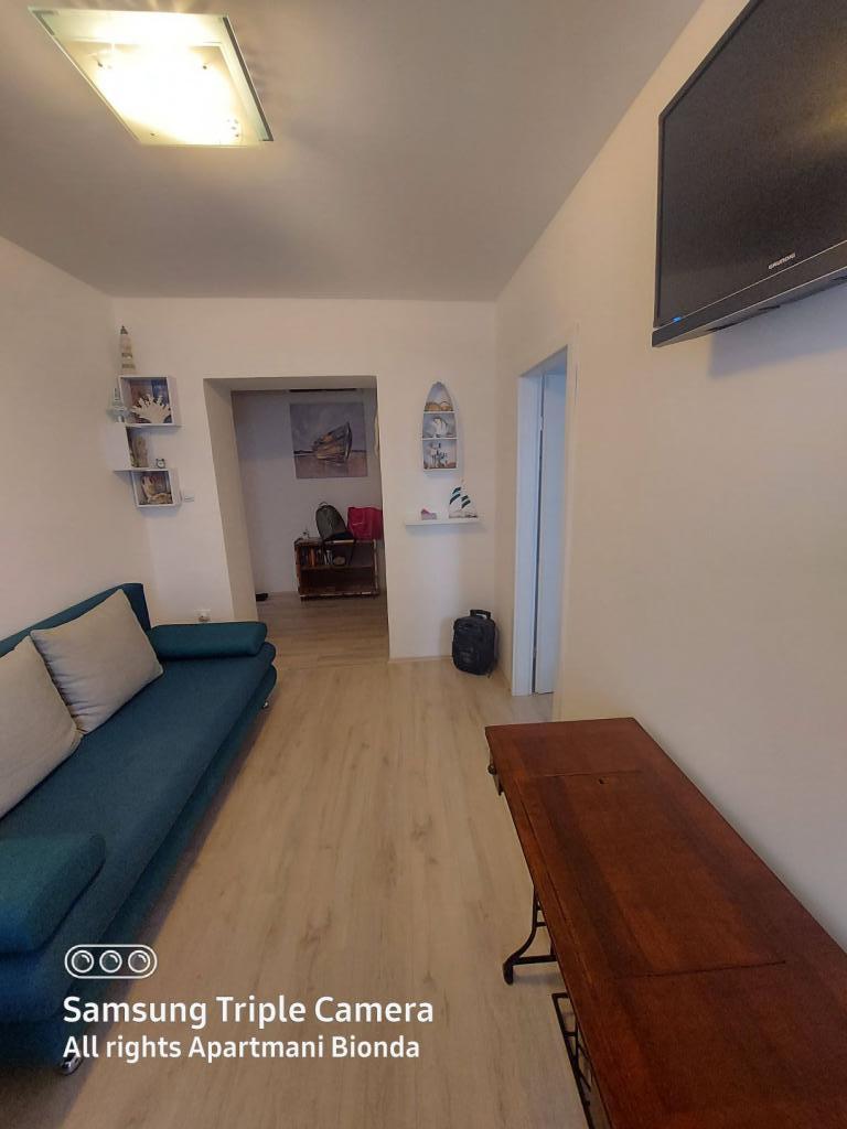 Apartament Bionda ma powierzchnię około 50m2 i składa się z kuchni, łazienki, salonu oraz sypialni. Przeznaczony jest dla maksymalnie 4 osób, w sypialni znajduje się podwójne łóżko, aw salonie rozkładana sofa o wymiarach 160x200cm. Mieszkanie znajduje się w centrum miasta, na jego starówce, nie ruchliwej. Od morza dzieli Cię zaledwie 20 stopni, a od centralnego placu tylko około 50 m. Mieszkanie jest klimatyzowane iw pełni wyposażone do codziennych potrzeb. (telewizor LED w salonie i sypialni, kuchnia wyposażona w piekarnik, płytę grzewczą, lodówkę z zamrażarką, parasol do dyspozycji, pościel zmieniana co tydzień) Podczas pobytu u nas otrzymujesz bilet parkingowy w ogólnodostępnym parking.