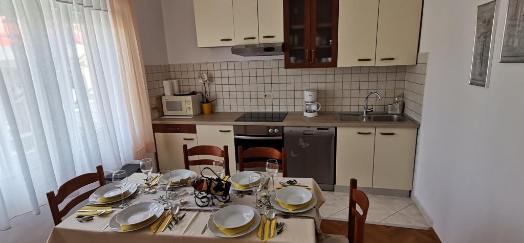 W pełni i nowocześnie wyposażone mieszkanie w spokojnej części Novi Vinodolski, 5 minut spacerem od centrum miasta i 5 minut spacerem od głównej plaży. Dom z ogrodem, ogrodem, dużym tarasem i dwoma dużymi balkonami z widokiem na morze. Mieszkanie posiada dwa bezpłatne miejsca parkingowe. Na podwórzu apartamentu goście mają do dyspozycji grill. Jest klimatyzowany, a każdy pokój wyposażony jest w telewizję satelitarną.