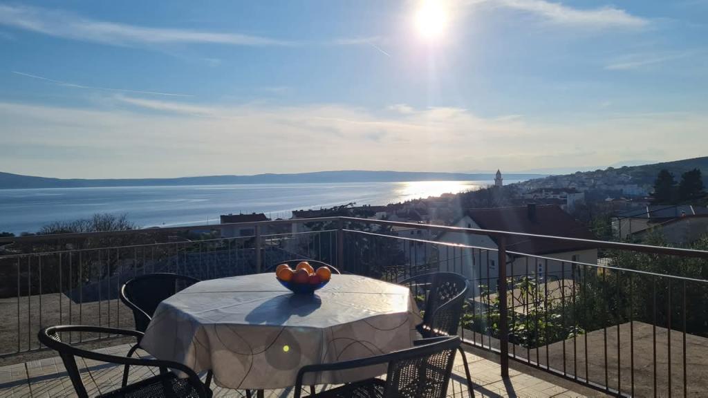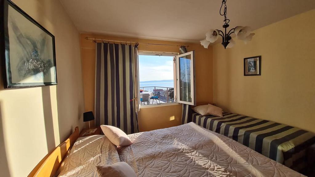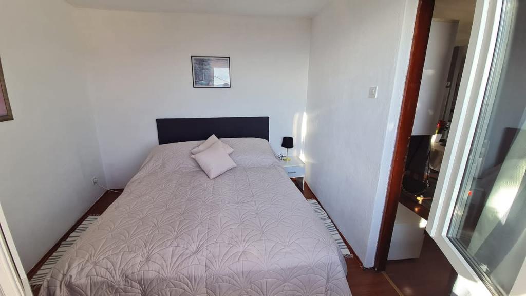 Wyposażony apartament z dwiema dużymi sypialniami, kuchnią, salonem, łazienką i pięknym dużym tarasem z widokiem na morze i centrum miasta. Wyposażone we wszystkie sprzęty AGD (pralka, zmywarka, mikrofalówka, toster, piekarnik, czajnik, grill elektryczny). W cenę wliczony jest parking, klimatyzacja i WiFi. Apartament położony jest 5 minut od centrum miasta i 10 minut od głównej plaży.