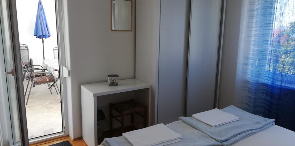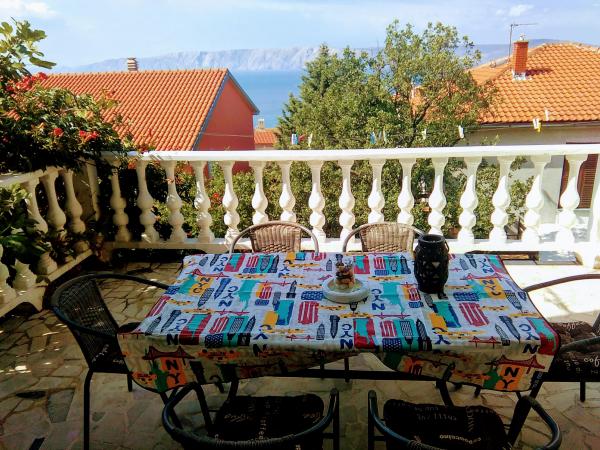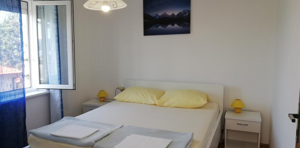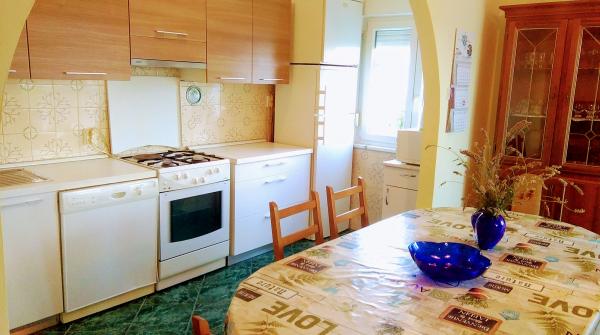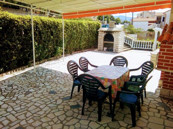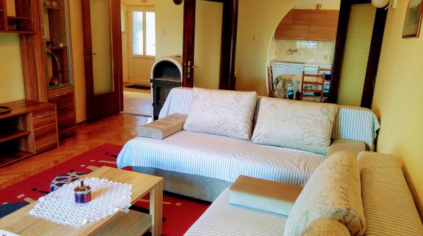 W pełni wyposażony apartament o powierzchni 100 m2 z miejscem do grillowania. Znajduje się w spokojnej części Novi Vinodolski, Z apartamentu jest 400 m do plaży lub 5 minut spacerem, 700 m do centrum miasta, 500 m do pierwszej restauracji, do najbliższego sklepu 50 m. Ma trzy sypialnie. Dwa pokoje mają mały balkon, a trzecia sypialnia ma taras z widokiem na morze. Ma dwie łazienki, jedną dużą i jedną mniejszą. Kuchnia jest w pełni wyposażona w zmywarkę, czajnik, kuchenkę mikrofalową, lodówkę z zamrażarką, kuchenkę, ekspres do kawy z filtrem. W kuchni znajduje się jadalnia z dużym stołem i krzesłami. Jadalnia ma mały balkon z widokiem na ogród i morze. Salon posiada klimatyzację, wyjście na taras z widokiem na morze i dodatkowe łóżko. Obiekt posiada WI-FI, na końcu obiektu znajduje się parking na 2-3 samochody. Na podwórku znajduje się część wypoczynkowa i sprzęt do grillowania.