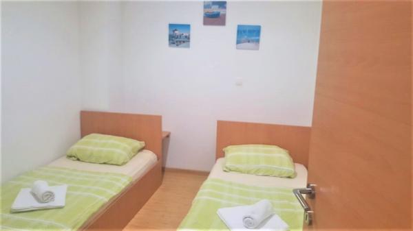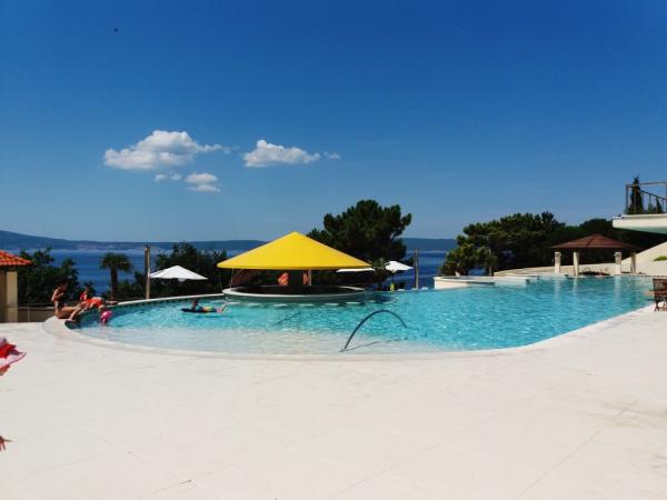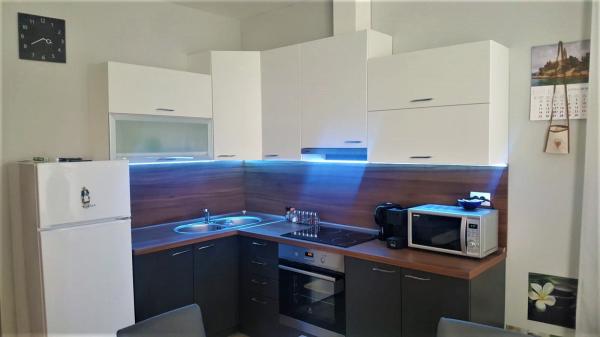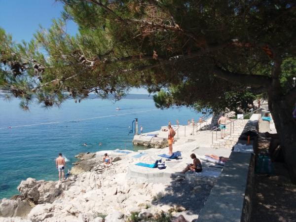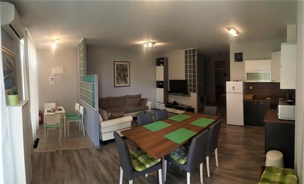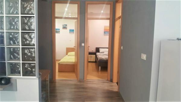 Nowocześnie urządzony i nowocześnie wyposażony apartament w spokojnej i płaskiej okolicy Novi Vinodolski, położony na parterze trzypiętrowego budynku blisko morza i centrum miasta. Obiekt znajduje się w kompleksie apartamentów HIT-MARINA, 10 minut spacerem od centrum i 5 minut spacerem od pierwszej plaży. Sklepy w pobliżu: 1. Gavranović 30 m 2. Supermarket Lidl 50 m 3. Targ Tomy 200 m 4. Plodine 230 m Pierwszy bar Cafe z tarasem znajduje się 10 m dalej. Tylko 1 km dalej znajduje się tawerna i duża winnica z salą degustacyjną najwyższej jakości win, restauracją i sklepem z winami i innymi lokalnymi produktami gastronomicznymi. Zaplecze Novi Vinodolski oferuje różnorodne możliwości spacerów, jazdy na rowerze z przygotowanymi ścieżkami, punktami widokowymi, agroturystyką i możliwością jazdy konnej. Oprócz licznych restauracji, pobliskiego centrum wellness i SPA oraz plaży z krystalicznie czystym morzem, bez jeżowców i alg, znajduje się tu również długa promenada. Oprócz standardowych boisk sportowych, w mieście działa również klub nurkowy. Miasta Selce i Crikvenica oddalone są o zaledwie 6 km, a wyspa Krk i lotnisko o 35 km.