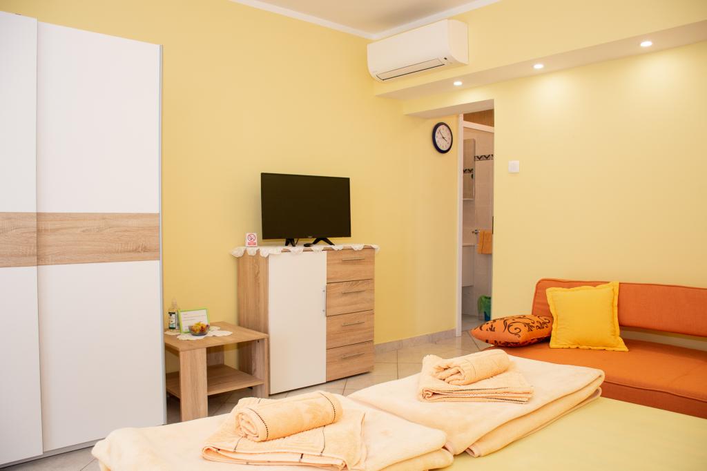 Szanowni Państwo, w naszym obiekcie oddajemy do Państwa dyspozycji dwa pięknie urządzone apartamenty dwuosobowe. Obiekt położony jest w spokojnej części miasta Novi Vinodolski, zaledwie kilka minut spacerem od centrum miasta i głównej plaży. Z apartamentów roztacza się widok na morze lub starówkę. Klimatyzacja nie jest wliczona w cenę apartamentu. Jeśli chcesz z niej korzystać, musisz zapłacić 8 euro osobno. Wpłacając zaliczkę w wysokości 30% potwierdzasz swoją rezerwację. Mamy nadzieję, że wybiorą Państwo nasze apartamenty na swój urlop. Dzięki.