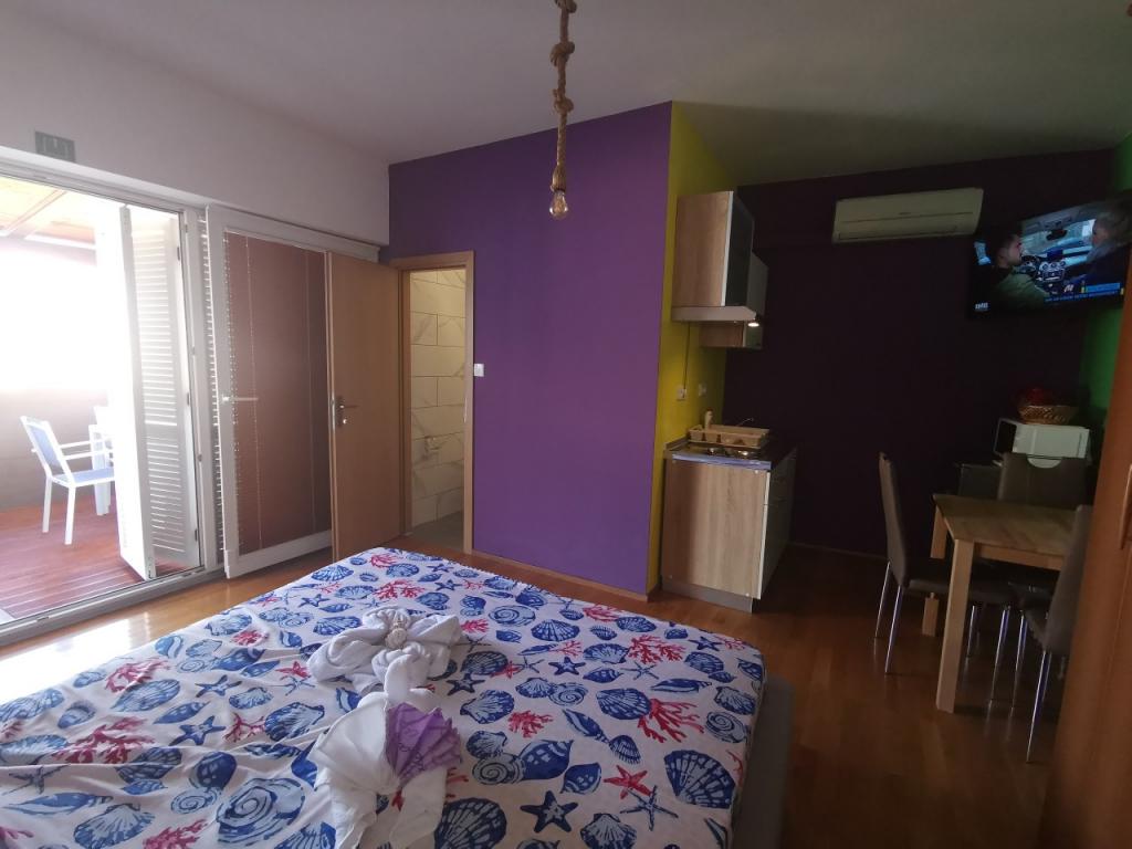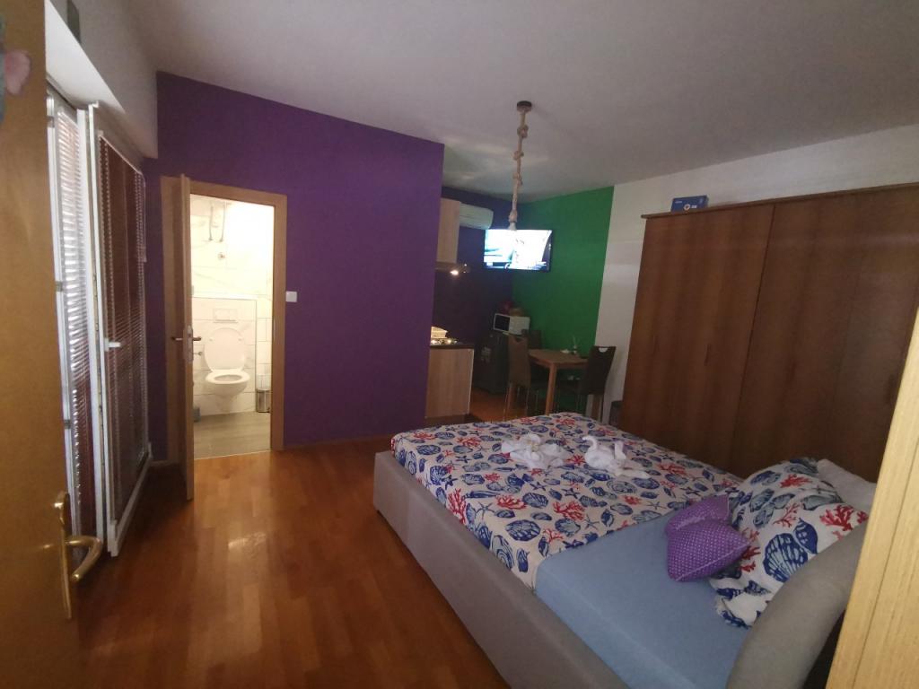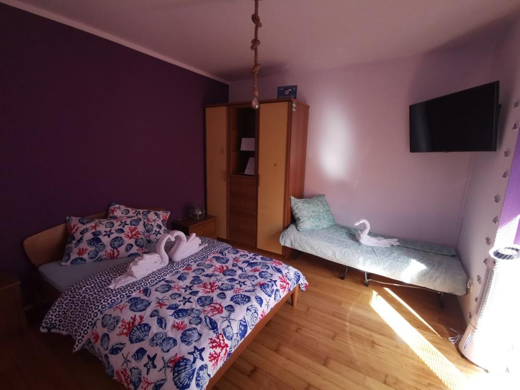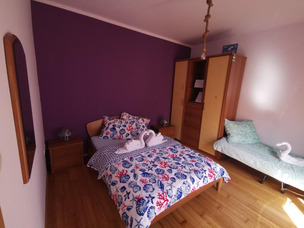 W pełni i nowocześnie urządzony apartament z 6 łóżkami do wynajęcia z możliwością 2 dodatkowych łóżek z pięknym widokiem na morze, w pobliżu wszystkich udogodnień, restauracji, morza i plaż. Idealny na spokojne rodzinne wakacje. Możesz wybierać między piaszczystymi i żwirowymi plażami, które znajdują się 750 metrów od apartamentu. Plaże składają się z wielu udogodnień dostosowanych do dzieci w każdym wieku. Mieszkanie składa się z sypialni, łazienki, kuchni i balkonu i jest piękny taras z widokiem na morze i grill. Każdy apartament posiada klimatyzację i bezpłatny dostęp do Internetu. Mamy również ogrodzony parking (150 m od mieszkania), który jest w cieniu, dzięki czemu można bezpiecznie przechowywać puszkę podczas wakacji. Centrum znajduje się w odległości krótkiego spaceru od hotelu, więc wieczory mogą być wypełnione różnymi zajęciami.