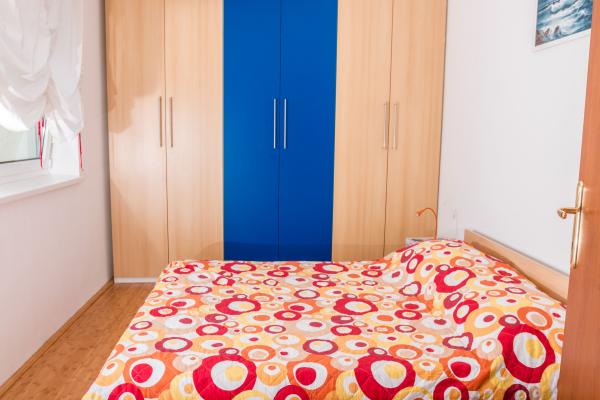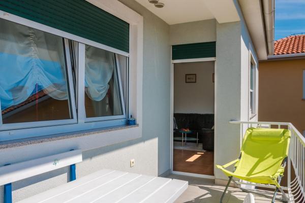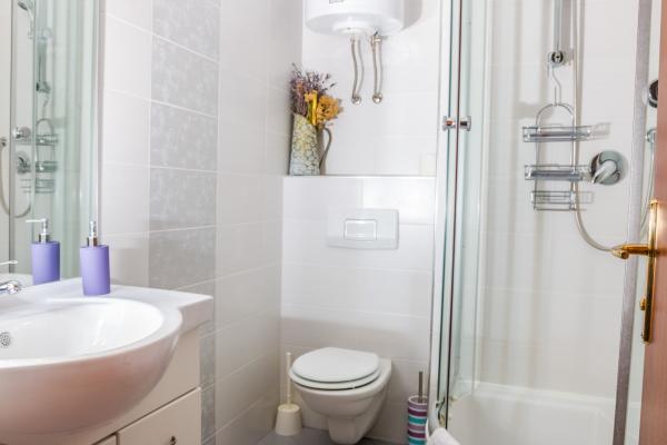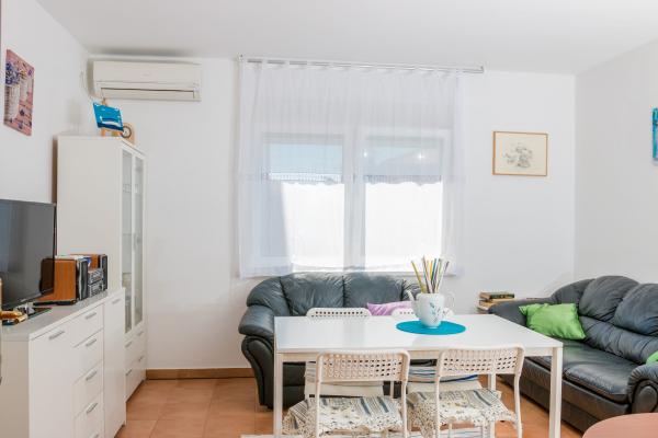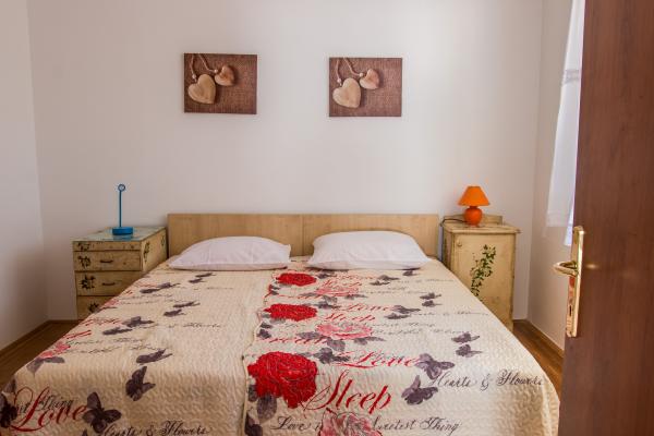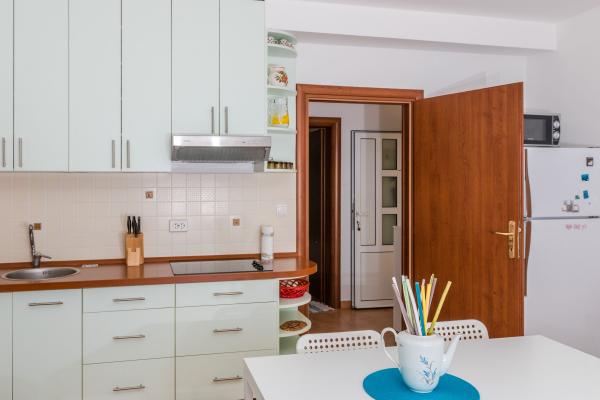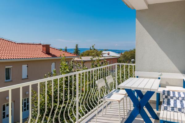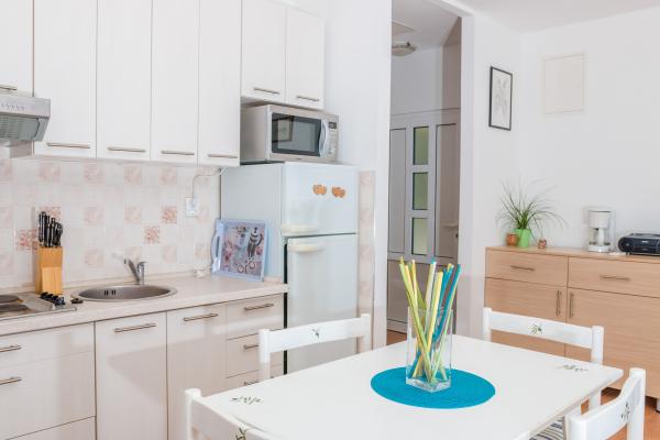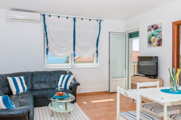 Apartament z widokiem na morze z tarasu, salonu oraz sypialni, w pełni wyposażone. Posiada dwie sypialnie, pokój dzienny z całkowicie wyposażoną kuchnią, łazienka, taras, bezpłatny parking, bezpłatny bezprzewodowy dostęp do Internetu mieszka. Jest on położony w spokojnej okolicy, tylko 10 min. spacerem od plaży i centrum miasta. Wszystkie obiekty są na 10 do 15 minut spacerem i nie ma potrzeby korzystać z samochodu.