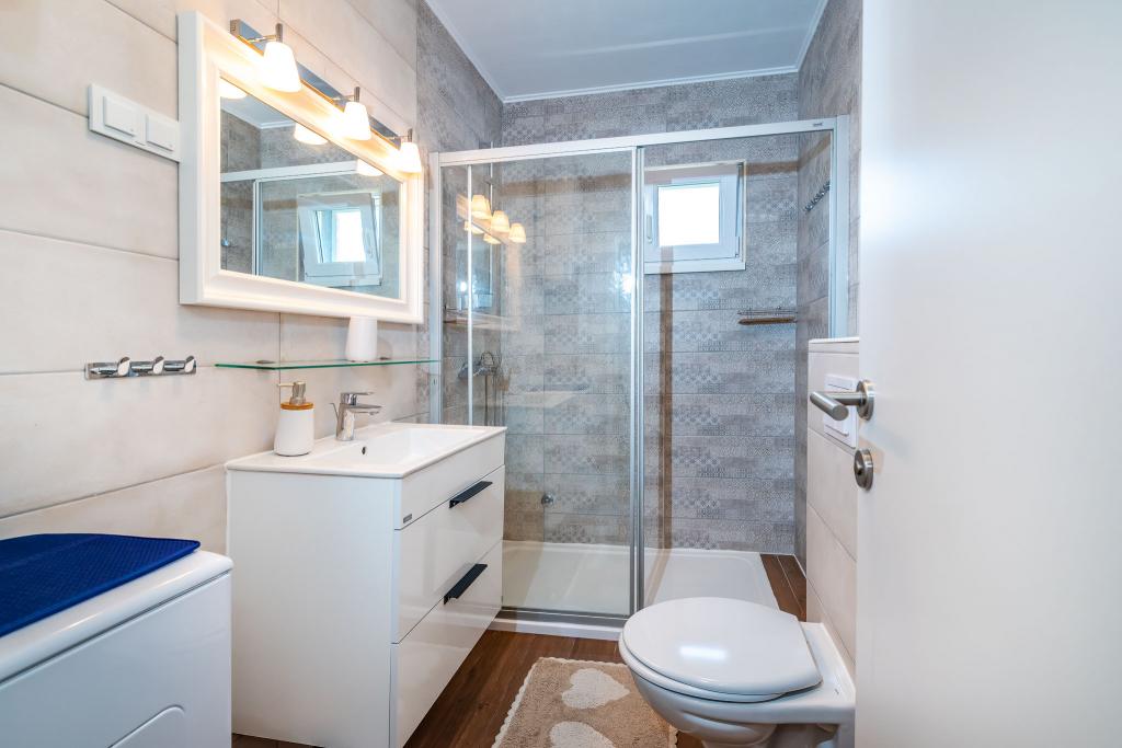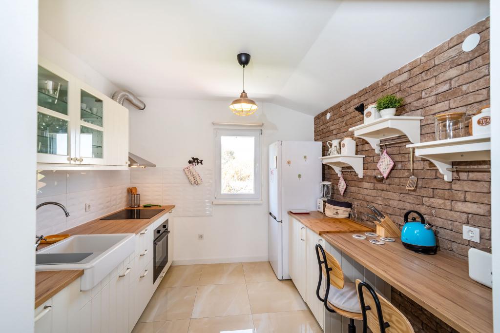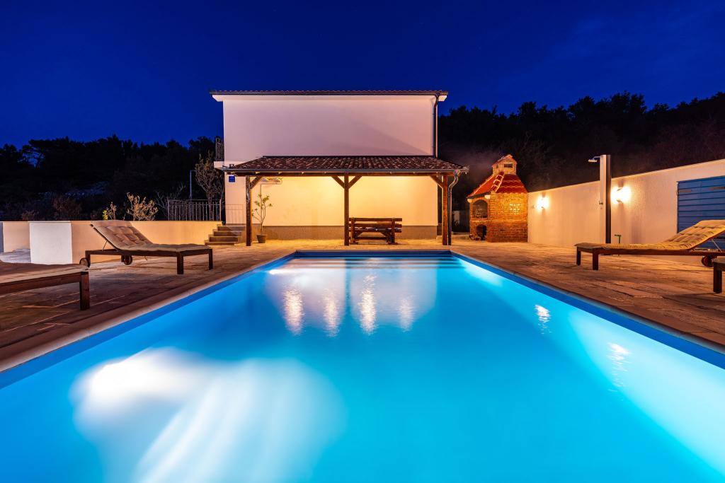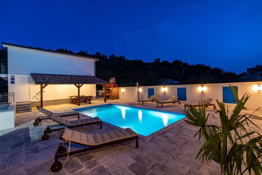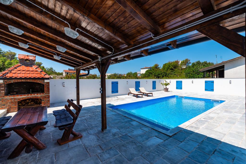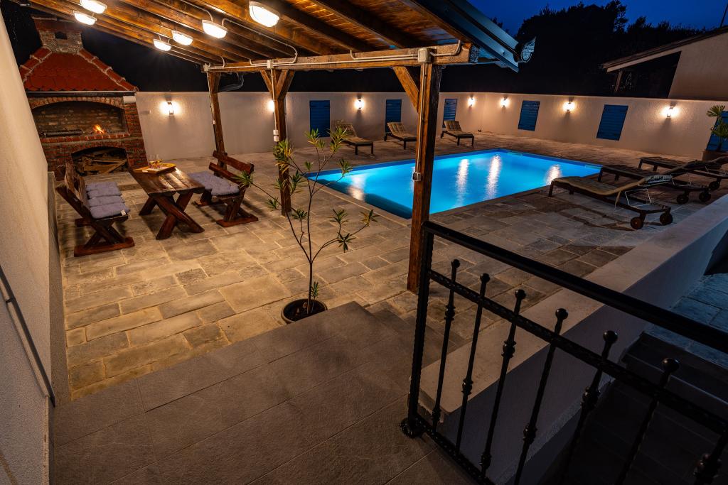 Knight`s House Novigrad / Knight`s House Novigrad to całkowicie odnowiony dom na luksusowe wakacje, z grillem na świeżym powietrzu i dużym basenem 8x4m. Położone w małym turystycznym mieście Dalmacji, ze wspaniałym otwartym widokiem na Velebit, na końcu ślepej uliczki, gdzie cisza i spokój są w największym zgiełku. Dom ma 2 apartamenty. Łączna pojemność 12 osób. Można wynająć całe lub pojedyncze mieszkanie dla 6 osób. Apartamenty są trzyosobowe, na parterze i na piętrze. Wyposażony w nowoczesne, nowe kuchnie ze zmywarkami, łazienki z przestronnymi kabinami prysznicowymi, telewizory z płaskim ekranem, każda z 1 sypialnią z łóżkiem king-size i 1 pokojem z 2 łóżkami pojedynczymi. Mieszkańcy mają sofy nowej jakości, które rozciągają się na łóżko typu king size. Na piętrze jest balkon z widokiem na morze, dolne mieszkanie ma własny duży taras. Jest wspólny duży, brukowany dziedziniec, ogrodzony i zamknięty, duży grill oraz basen z 8 wygodnymi leżakami. Dom jest luksusowo urządzony, z dużą starannością i dbałością o twoje przyjemne i relaksujące wakacje.