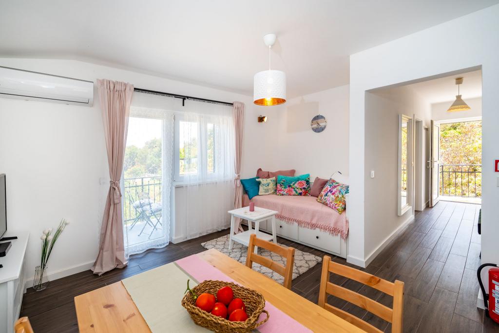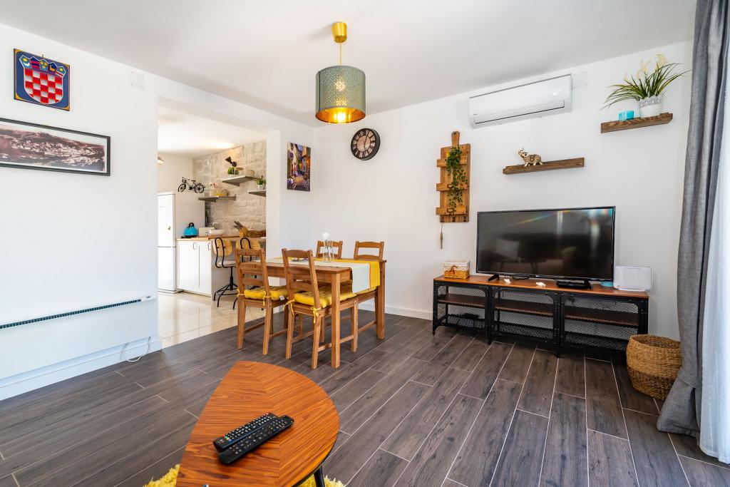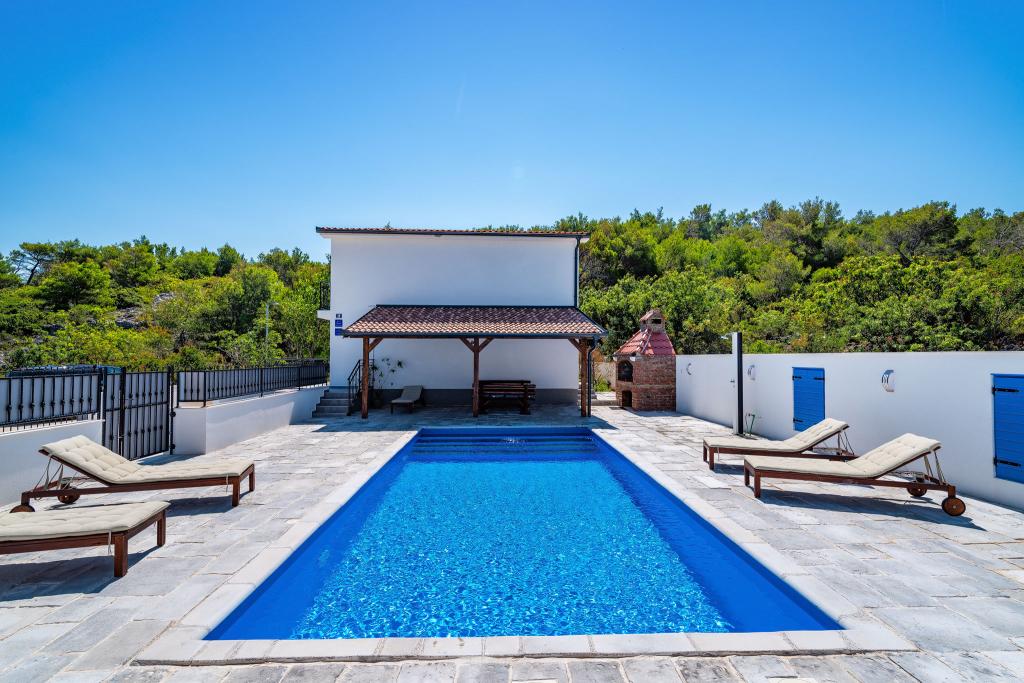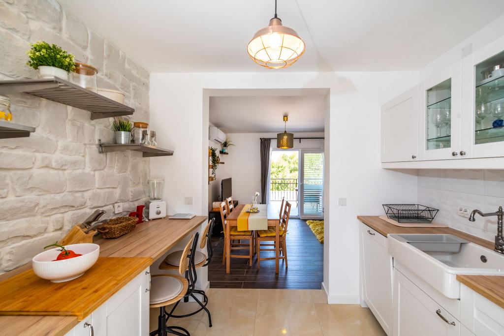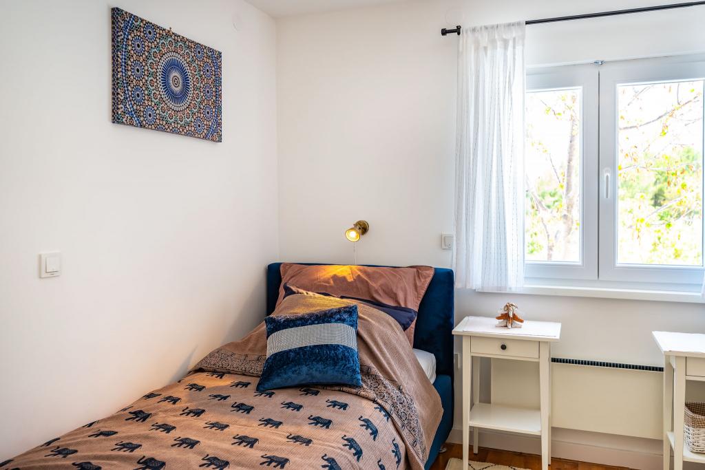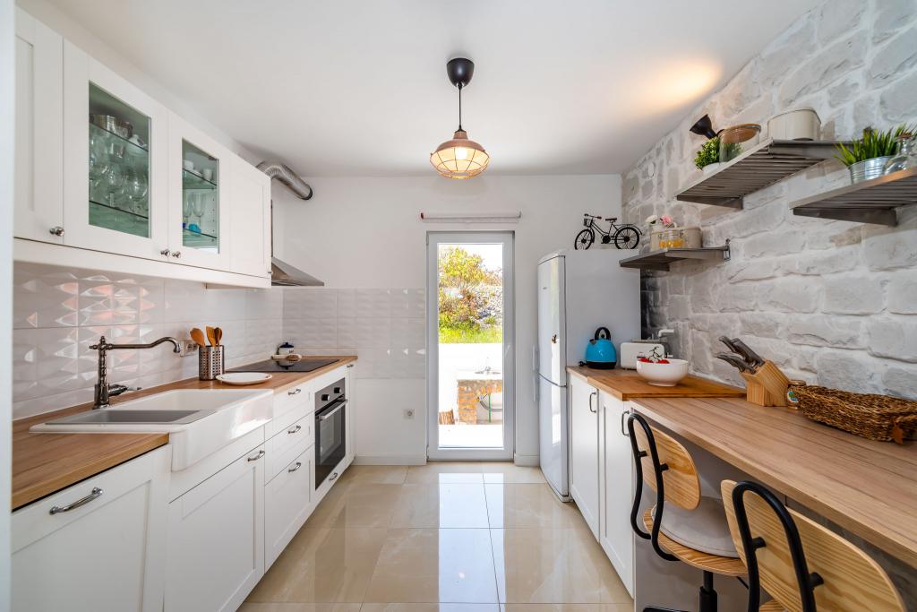 Knight`s House Novigrad / Knight`s House Novigrad to całkowicie odnowiony dom na luksusowe wakacje, z grillem na świeżym powietrzu i dużym basenem 8x4m. Położone w małym turystycznym mieście Dalmacji, ze wspaniałym otwartym widokiem na Velebit, na końcu ślepej uliczki, gdzie cisza i spokój są w największym zgiełku. Dom ma 2 apartamenty. Łączna pojemność 12 osób. Można wynająć całe lub pojedyncze mieszkanie dla 6 osób. Apartamenty są trzyosobowe, na parterze i na piętrze. Wyposażony w nowoczesne, nowe kuchnie ze zmywarkami, łazienki z przestronnymi kabinami prysznicowymi, telewizory z płaskim ekranem, każda z 1 sypialnią z łóżkiem king-size i 1 pokojem z 2 łóżkami pojedynczymi. Mieszkańcy mają sofy nowej jakości, które rozciągają się na łóżko typu king size. Na piętrze jest balkon z widokiem na morze, dolne mieszkanie ma własny duży taras. Jest wspólny duży, brukowany dziedziniec, ogrodzony i zamknięty, duży grill oraz basen z 8 wygodnymi leżakami. Dom jest luksusowo urządzony, z dużą starannością i dbałością o twoje przyjemne i relaksujące wakacje.