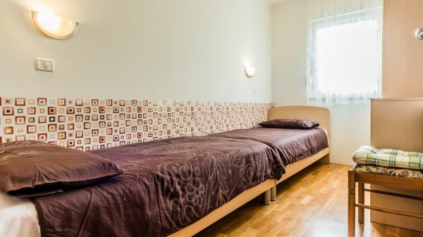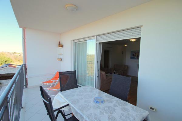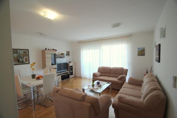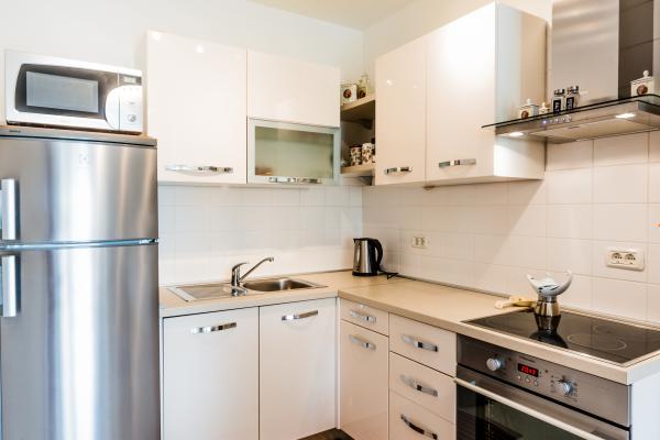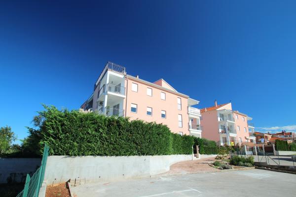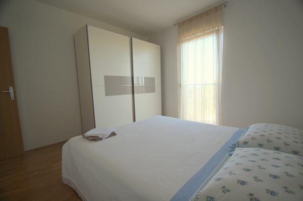 Nowocześnie urządzony apartament znajduje się w spokojnej dzielnicy, blisko morza. Mieszkanie składa się z 2 pokoi, kuchni, łazienki, pokój dzienny, jadalnia (z 2 dostawkami) oraz balkon z widokiem na morze. Mieszkanie posiada ogrodzony parking. Budynek w którym mieści się app ma ładne podwórko, a przed budynkiem jest uniwersalne boisko i mały park na salon gier i dzieci.