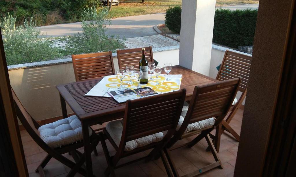 Apartament z dwiema sypialniami, pierwsza z podwójnym łóżkiem 160x200 i tarasem, druga z dwoma łóżkami 90x200 i jednym dodatkowym łóżkiem w salonie. Pokój dzienny i kuchnia z dodatkowym tarasem z widokiem na ogród. Łazienka, Wi-Fi, bezpłatny parking. Znajduje się na pierwszym piętrze w budynku z innymi mieszkaniami. 200 m od plaży, 5 minut na piechotę. Znajduje się w spokojnym miejscu, w wiosce turystycznej DAJLA, na przedmieściach Novigradu na Istrii, 3,5-4 km od centrum. Sklep 100m, piekarnia i restauracja 80m. Jest idealny na spokojne wakacje dla rodziny z dziećmi lub dorosłymi. Zwierzęta, palenie, imprezy prywatne i hałasowanie nie są dozwolone. Na życzenie istnieje możliwość dostawienia kolejnego łóżka, jedynie na więcej niż 4 noce, za dodatkową opłatą.
