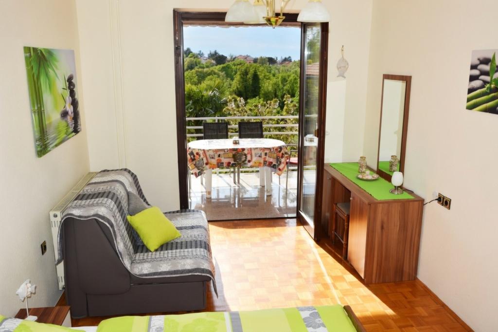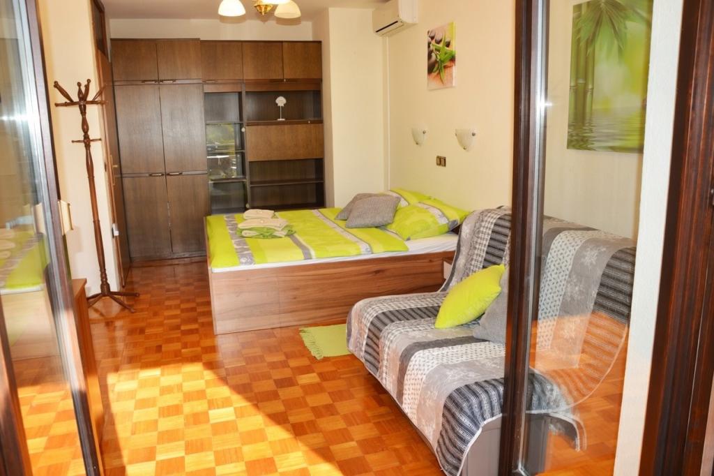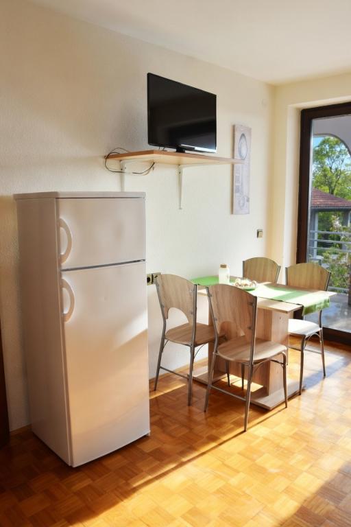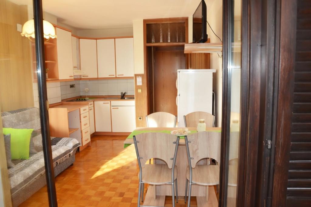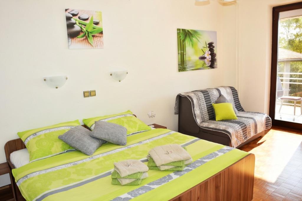 Klimatyzowany apartament na 1. piętrze może pomieścić do 4 osób. Apartament znajduje się w cichym miejscu, bez ruchu ulicznego, gdzie dzieci mogą swobodnie się bawić, a czas staje w miejscu. Każdego wieczoru z własnego tarasu można podziwiać zachód słońca i zanurzenie w morzu. Oprócz kuchni z salonem, do dyspozycji Gości jest oddzielna sypialnia, łazienka oraz zadaszony taras z widokiem na morze. Apartament jest w pełni wyposażony – w kuchni znajduje się wystarczająca ilość naczyń i sztućców. W cenę wliczony jest telewizor, pościel, ręczniki i suszarka do włosów. Korzystanie z Wi-Fi jest bezpłatne. Do dyspozycji Gości jest parking.