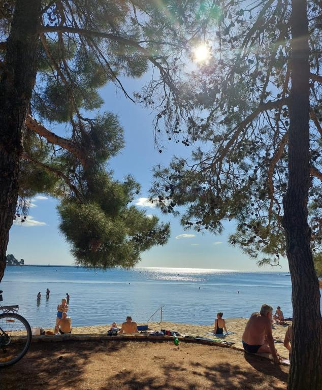 Położony w bezpośrednim sąsiedztwie plaży, dom Marina opiera się o las sosnowy i malowniczą długą promenadę z widokiem na bezkresny błękit morza. Prowadzi w jedną stronę do spokojnych plaż i ukrytych zatoczek, a w drugiej przez Marinę do ścisłego centrum miasta. Wzdłuż promenady znajdują się restauracje, kawiarnie, park dla dzieci, boiska sportowe, korty tenisowe, pole do minigolfa, siłownia plenerowa i ekologiczny plac z zieloną flagą. Zapach sosen, morza i soli nadaje całej atmosferze przyjemną i wyjątkową atmosferę. Dom Marina to idealne miejsce na spokojny wypoczynek, ale także na aktywny wypoczynek na łonie natury. Wnętrze domu zaaranżowano tak, aby połączyć styl klasyczny i nowoczesny. Chodzi o to, aby zmaksymalizować komfort sypialni i innych przestrzeni. Apartamenty są wygodne i wyposażone w nowoczesny sprzęt. Każdy apartament posiada przestronny taras, na którym goście mogą odpocząć. Na podwórzu domu znajduje się miejsce na grilla i parking. Do plaży można dojść w minutę, a do centrum miasta w 10 minut, wzdłuż nadmorskiej promenady.