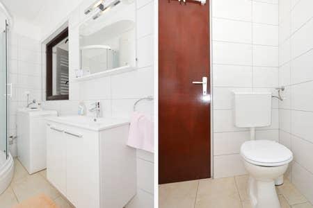 Witamy w domu wakacyjnym - Jasna Przestronny i komfortowy dom wakacyjny z fantastycznymi widokami, pierwszy rząd do morza. Cała przestrzeń jest dostępna dla gości. Dom może przyjąć 7 gości (5 2). Otoczenie jest ciche, bez hałasu, idealne na relaks, podczas gdy restauracje, bary, centrum znajdują się w odległości 1 km. Dom ma powierzchnię 100 m2 powierzchni mieszkalnej plus duży taras. Składa się z salonu, jadalni, w pełni wyposażonej kuchni, klimatyzowanej (parter). Na pierwszym piętrze znajdują się 2 sypialnie (1. sypialnia z podwójnym łóżkiem i balkonem z widokiem na morze; 2. sypialnia z 1 łóżkiem podwójnym i 1 łóżkiem pojedynczym oraz klimatyzacją). Łazienka z prysznicem i pralką znajduje się na pierwszym piętrze, a toaleta na parterze. Dostępne, wliczone w cenę, to dwa miejsca parkingowe przed domem.