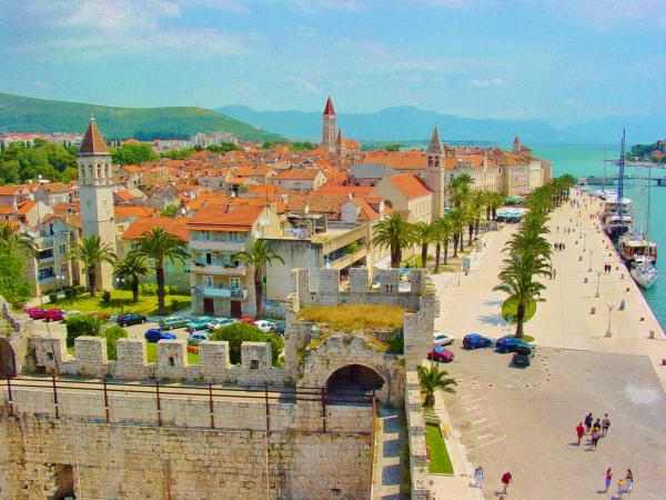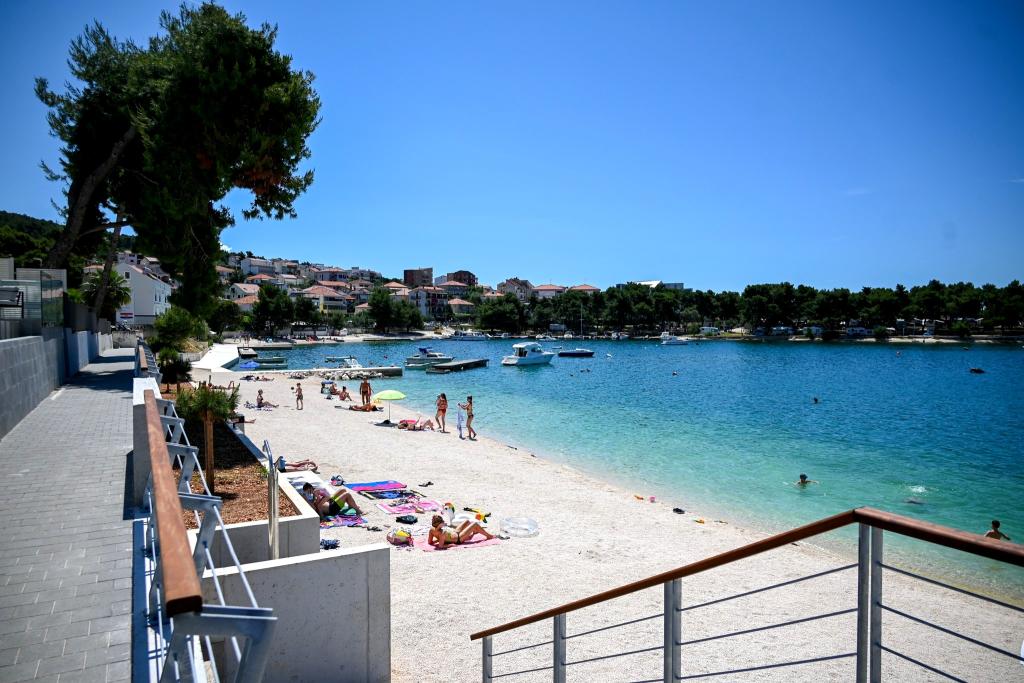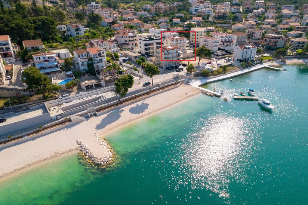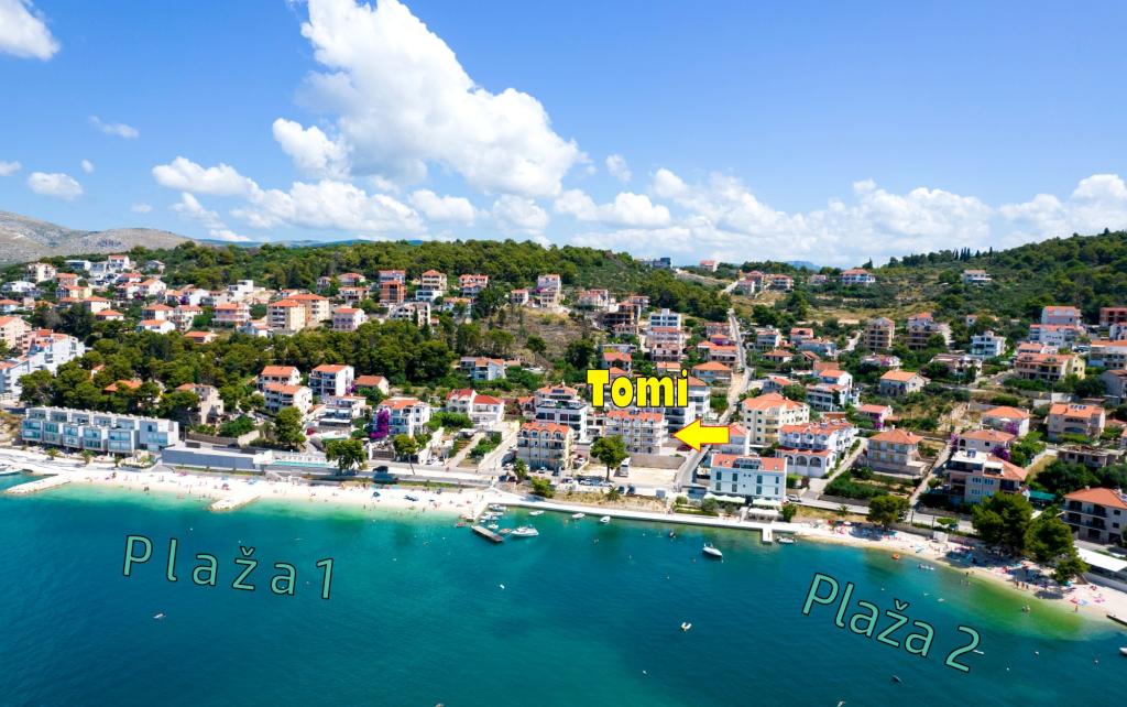 Nasz dom – Apartamenty Tomi – położony jest w pierwszym rzędzie do morza, tuż przy piaszczysto-żwirowej plaży na wyspie Čiovo, zaledwie 1500 metrów od wpisanego na listę światowego dziedzictwa UNESCO miasta Trogir. Do centrum można dojść spacerem w 10–15 minut. Trogir ma ponad 2300 lat i słynie z wąskich uliczek, kamiennych domów i bogatego letniego życia. Nasze apartamenty znajdują się zaledwie 50 metrów od plaży, co czyni je idealnym miejscem dla rodzin i wszystkich miłośników wakacji nad morzem. Plaże ciągną się kilometrami, oferując zarówno słońce, jak i naturalny cień. Obok domu znajduje się sklep, a każdy gość ma do dyspozycji miejsce parkingowe. Apartamenty są nowocześnie urządzone, klimatyzowane i wyposażone we wszystko, czego potrzeba do udanego wypoczynku. Niezależnie od tego, czy przyjeżdżasz z rodziną, partnerem, czy przyjaciółmi, Apartamenty Tomi to idealny wybór na relaksujący letni pobyt w sercu Dalmacji.