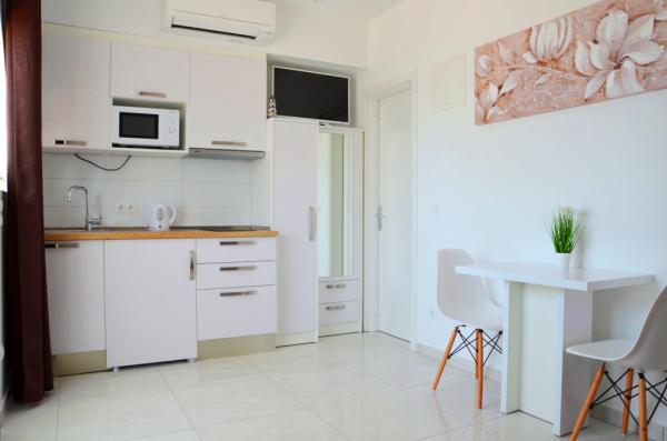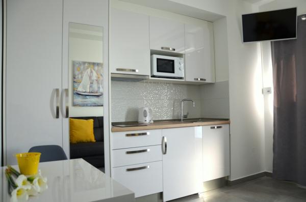Apartament typu studio to idealny rozmiar dla pary. Czysto i cicho. Kuchnia była nowoczesna i miała przyzwoitą liczbę urządzeń i wszystko, czego możesz potrzebować w kuchni. Skrót do centrum miasta. Blisko małej plaży. Z balkonu mieliśmy wspaniały widok na morze. Życzliwi gospodarze!