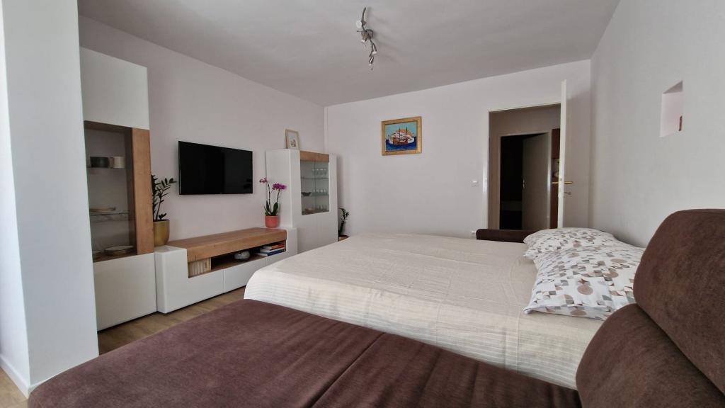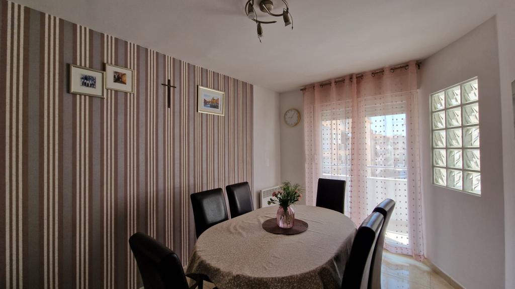 Apartament Jerčić znajduje się na 1. piętrze prywatnego domu. W pełni umeblowany i komfortowy apartament w spokojnej części miasta Omiš. Obiekt położony jest 10 minut spacerem od pięknej piaszczystej plaży, idealnej dla dzieci. Apartament składa się z 3 oddzielnych sypialni, w pełni wyposażonej kuchni, łazienki, dodatkowej toalety i balkonu. Apartament dysponuje maksymalnie 7 miejscami noclegowymi. Przed apartamentem znajduje się bezpłatny prywatny parking na 1 samochód. Apartament idealny dla rodziny z dziećmi lub grupy przyjaciół. Jesteśmy zawsze do dyspozycji naszych gości i witamy ich drinkiem powitalnym. W cenę apartamentu wliczony jest podatek turystyczny, bezpłatne WI-FI oraz parking. Korzystanie z klimatyzacji (nieobowiązkowe) jest płatne i wynosi 5 euro za dzień. Z przyjemnością witamy naszych gości i pozostajemy do dyspozycji, aby odpowiedzieć na wszelkie pytania lub udzielić niezbędnej pomocy. Czekamy na Państwa przybycie! Rodzina Jerčićów