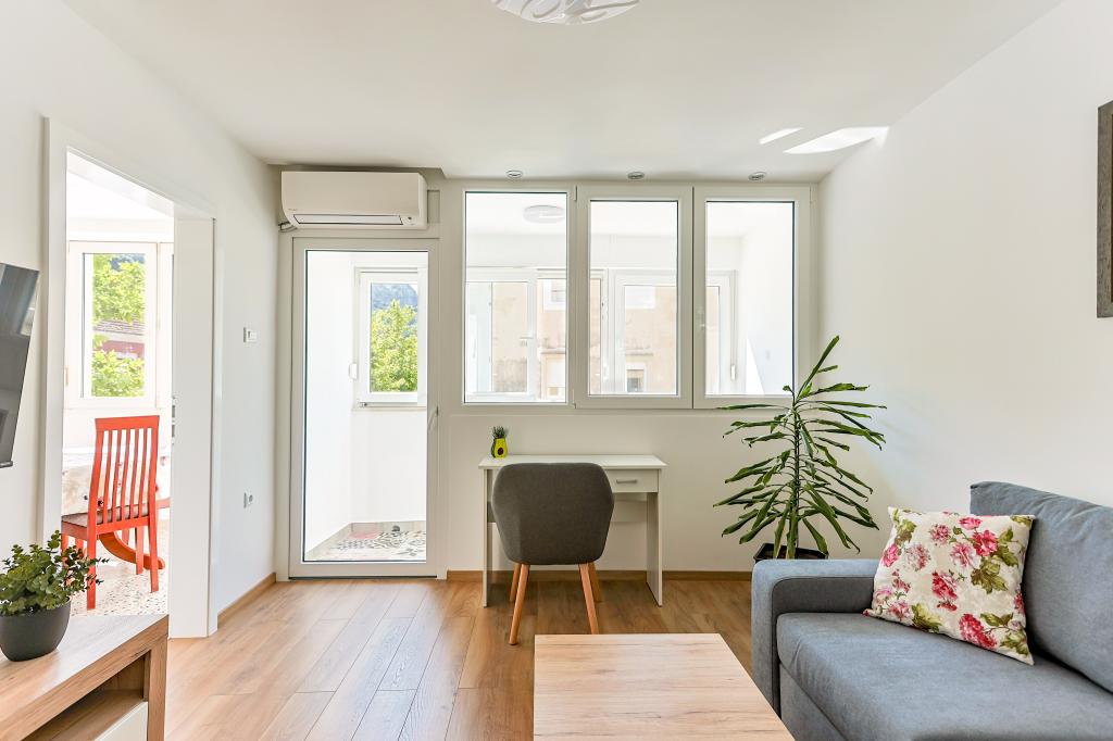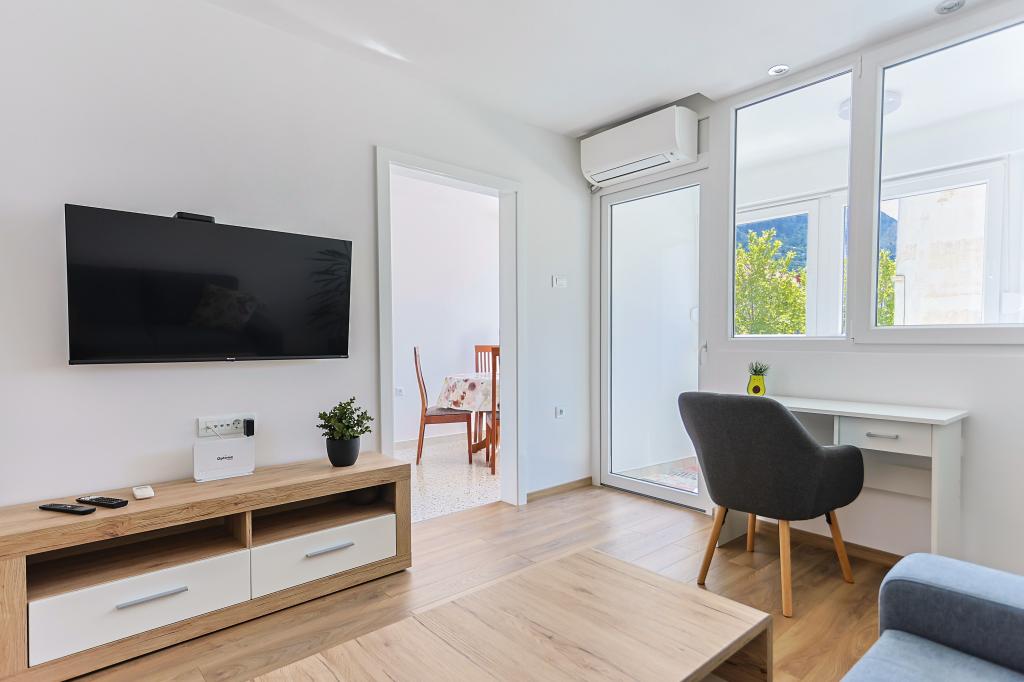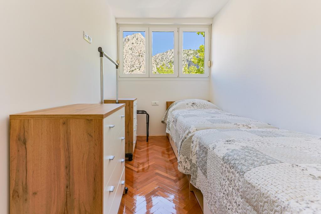 Nasz apartament znajduje się w samym centrum Omiša. Został niedawno całkowicie odnowiony i jest idealny dla par lub rodzin z dziećmi, ponieważ wszędzie jest naprawdę blisko. Mieści się w budynku mieszkalnym, na pierwszym piętrze. Piękna piaszczysta plaża znajduje się zaledwie 5 minut spacerem od apartamentu, a kolejna plaża jest oddalona o 15 minut spacerem. Omiš oferuje różne atrakcje (rafting, wspinaczka skałkowa, tyrolka, sporty wodne...) i wszystko jest w odległości kilku minut spacerem. W bezpośrednim sąsiedztwie znajdują się restauracje, kawiarnie i sklepy, a na parterze budynku, pod apartamentem, znajduje się nawet sklep mięsny. Mieszkanie znajduje się w budynku mieszkalnym, dlatego nie ma możliwości organizowania przyjęć ani przyprowadzania gości. Zapewniony parking publiczny.