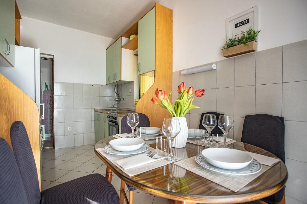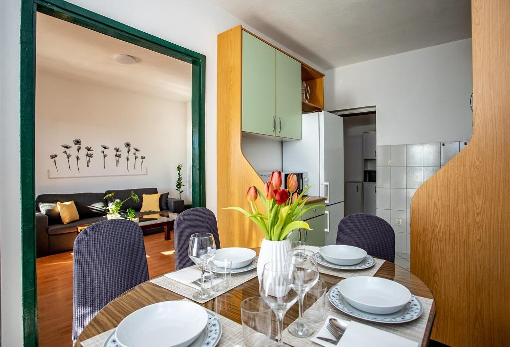 Budynek znajduje się 10 minut spacerem od centrum miasta i piaszczystej plaży. Znajduje się w spokojnej części Omiša. Przy budynku znajduje się bezpłatne miejsce parkingowe na 1 samochód. Omiš to mała miejscowość, więc wszędzie można dojść pieszo, nie uruchamiając samochodu. Mieszkanie jest naprawdę duże z 3 sypialniami i dużym tarasem, z którego roztacza się piękny widok na całe Omiš.