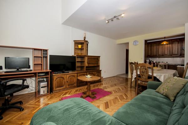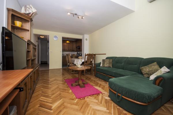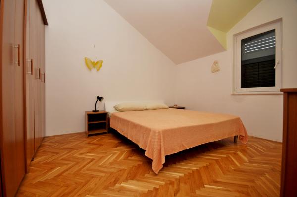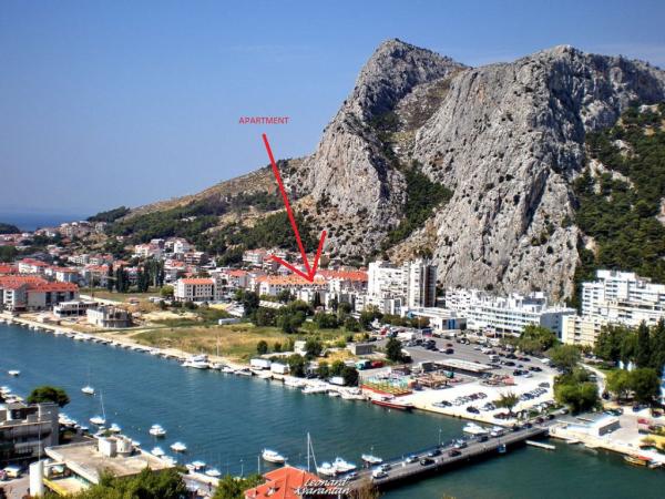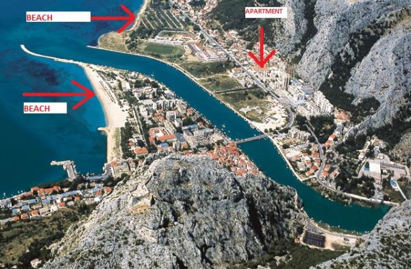 W pełni umeblowane mieszkanie znajduje się w Omis, w budynku, na 3 piętrze. Mieszkanie znajduje się na dwóch piętrach, parterze znajduje się pokój dzienny, kuchnia, duża łazienka, mała toaleta i duży pokój z podwójnym łóżkiem. Mały balkon jest na tym piętrze. Na drugim piętrze znajduje się łazienka i dwie sypialnie. Mieszkanie ma trzy klimatyzacja, wi-fi, telewizor, pralka, zmywarka, czajnik elektryczny, kuchenkę mikrofalową.