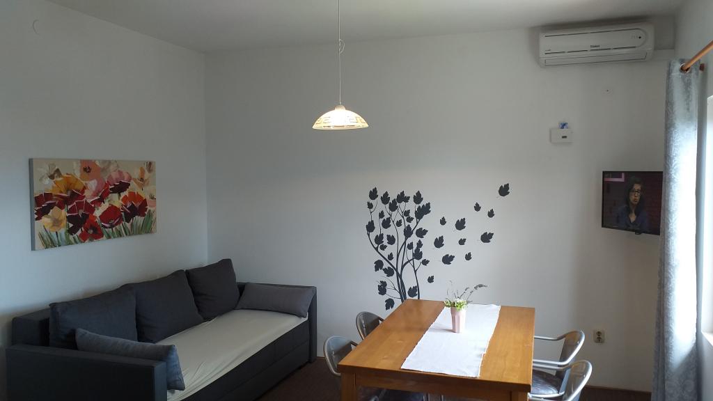 Wszystkie apartamenty posiadają w pełni wyposażoną kuchnię, klimatyzację, telewizor z płaskim ekranem i dostępem do kanałów telewizji satelitarnej, roztacza się widok na morze. Duży parking i ogród z przodu domu, grill. Plaża znajduje się w odległości 20 metrów od domu. Pościel i ręczniki są wliczone.