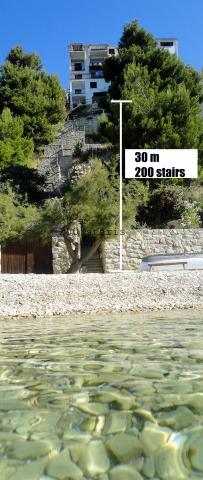 Bardzo dobra lokalizacja, schody, nie męczą, chociaż wyglądają groźnie. Na plaży własne leżaki, 2 kajaki i inne przydatne rzeczy. Wyposażenie może niezbyt nowoczesne i minimalistyczne, ale jest wszystko co niezbędne. Klima jedna, tylko w salonie. Minusem mały parking, byliśmy 2 samochodami i trzeba było kombinować. Ogólnie polecam, za te pieniądze naprawdę dobra propozycja.