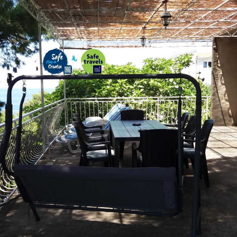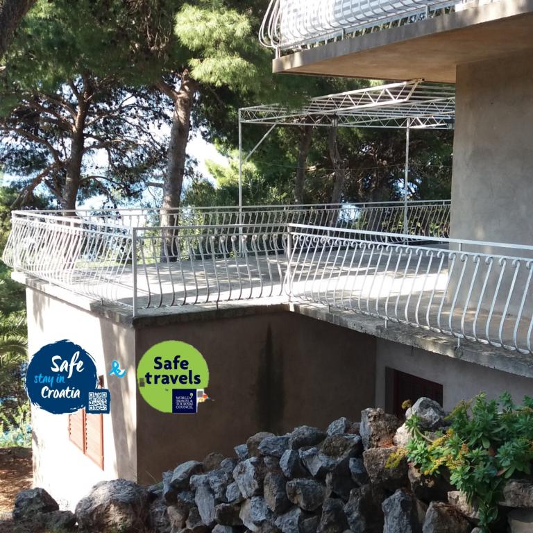 Dom rodzinny z dwoma apartamentami (jeden dla 2+1 osób i drugi dla 6+1 osób) położony w pięknym miejscu, tuż przy morzu, otoczony własnym lasem sosnowym, który ciągnie się aż do plaży. Dom jest oazą spokoju i ciszy, z dala od hałasu ulicznego i ludzkiego zgiełku. Dom położony jest 30 m od plaży i 40 m od morza. Jedyną rzeczą zakłócającą ten idealny spokój jest ćwierkanie ptaków i szum fal. Apartamenty są klimatyzowane i wyposażone. Na podwórzu przed domem do dyspozycji gości jest grill. W cenie apartamentu znajduje się miejsce parkingowe przy domu. Sklep znajduje się około 350 metrów od domu, a boisko sportowe znajduje się w odległości 300 metrów. Do centrum miasta jest około 3000 m. Znajdziemy tam aptekę, stację benzynową i pogotowie ratunkowe. Przystanek autobusowy znajduje się około 600 m od domu. Wszelkie inne informacje są dostępne na życzenie. Oczekiwanie. 6 1 składa się z 3 sypialni dwuosobowych, salonu z sofą, kuchni, łazienki, toalety i dużego tarasu o powierzchni 60 m2 z widokiem na morze. Oczekiwanie. 2 1 posiada oddzielną sypialnię dwuosobową, salon z kuchnią i sofą, łazienkę oraz taras z widokiem na morze.