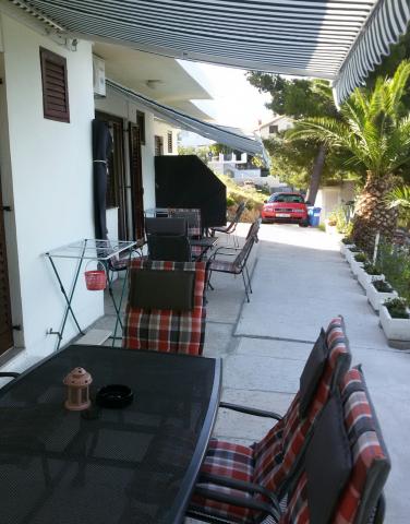 Apartament położony jest na wzniesieniu, kilka minut od plaży, na którą prowadzą dość strome schody. Plaża jest dość szeroka, zawsze można znaleźć zacienione miejsce. Wieczorem można usiąść na tarasie i podziwiać piękny widok na morze. Bliskość ruchu nie stanowiła problemu. Świetny stosunek jakości do ceny. Apartamenty są czyste, wyposażone we wszystko, czego potrzebujesz. Właściciel był bardzo miły i pomocny. Stara się, aby Twój pobyt był jak najlepszy, udzielając porad. Klimatyzacja w dwóch sypialniach, wentylator w kuchni, pralka w łazience - super. W bezpośrednim sąsiedztwie znajdują się 3 restauracje, 2 sklepy, 1 stoisko owocowo-warzywne. Wszystkie restauracje są godne polecenia, ale najlepsza pizza jest w Alfa. Bar i restauracja przy plaży.